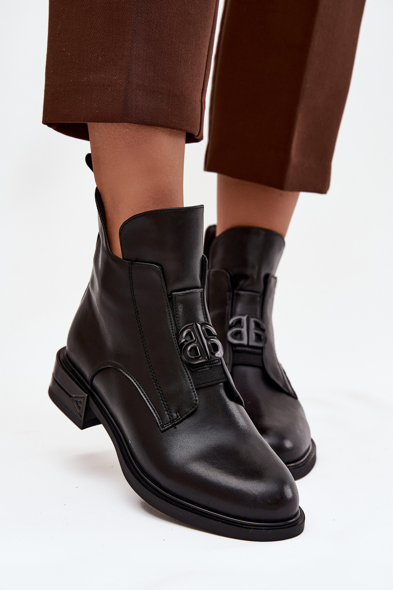 Zateplené kožené dámske čižmy s ozdobným detailom čierne Briselda