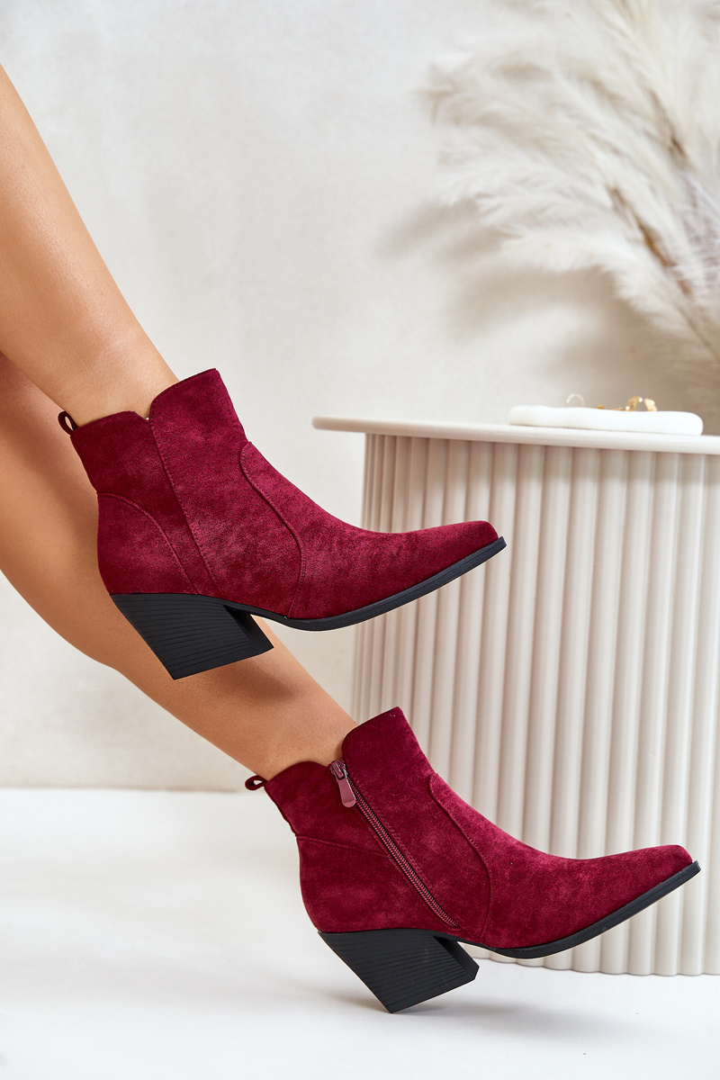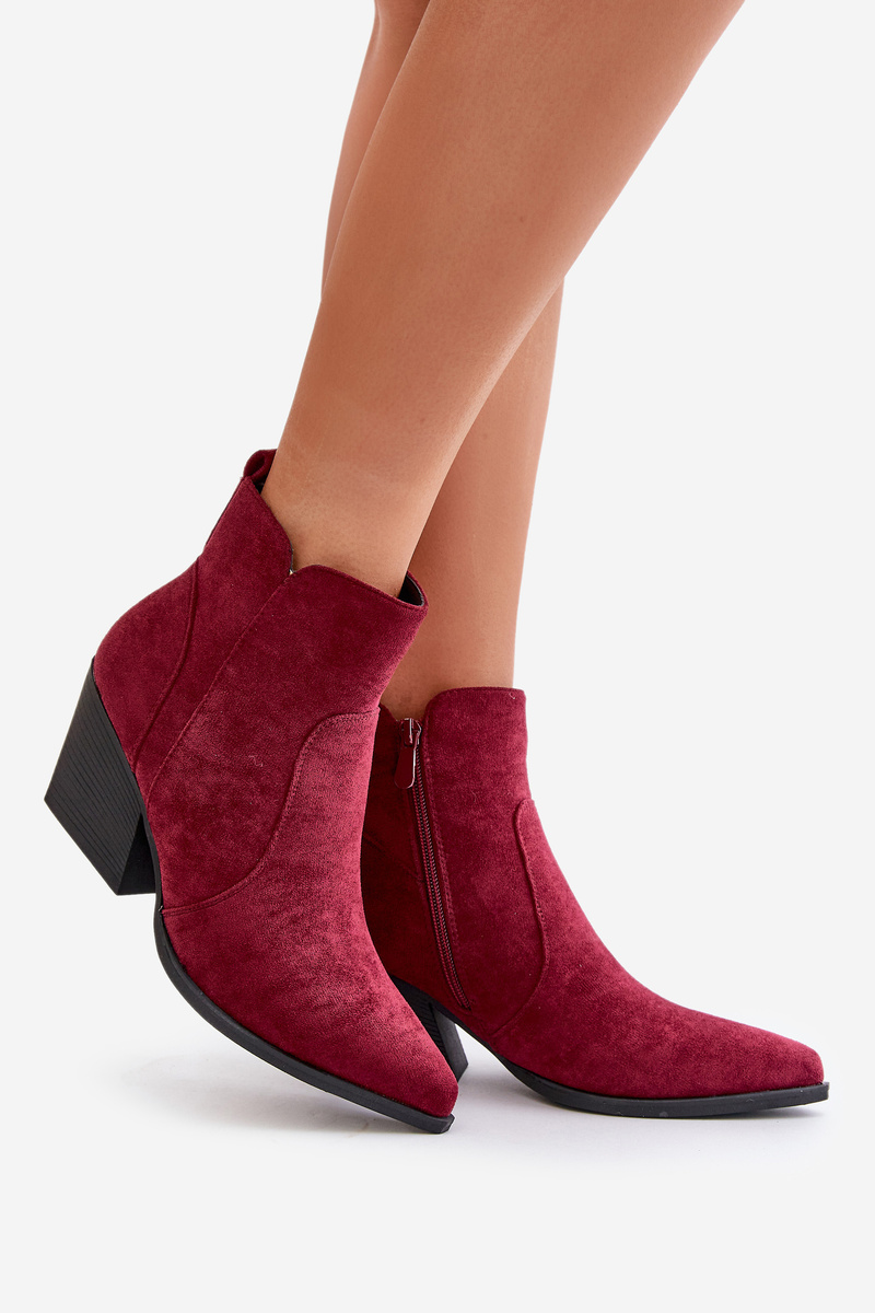 Zateplené Kožené Topánky Cowboy Eko Semišové S Zipsom Bordové Virtris