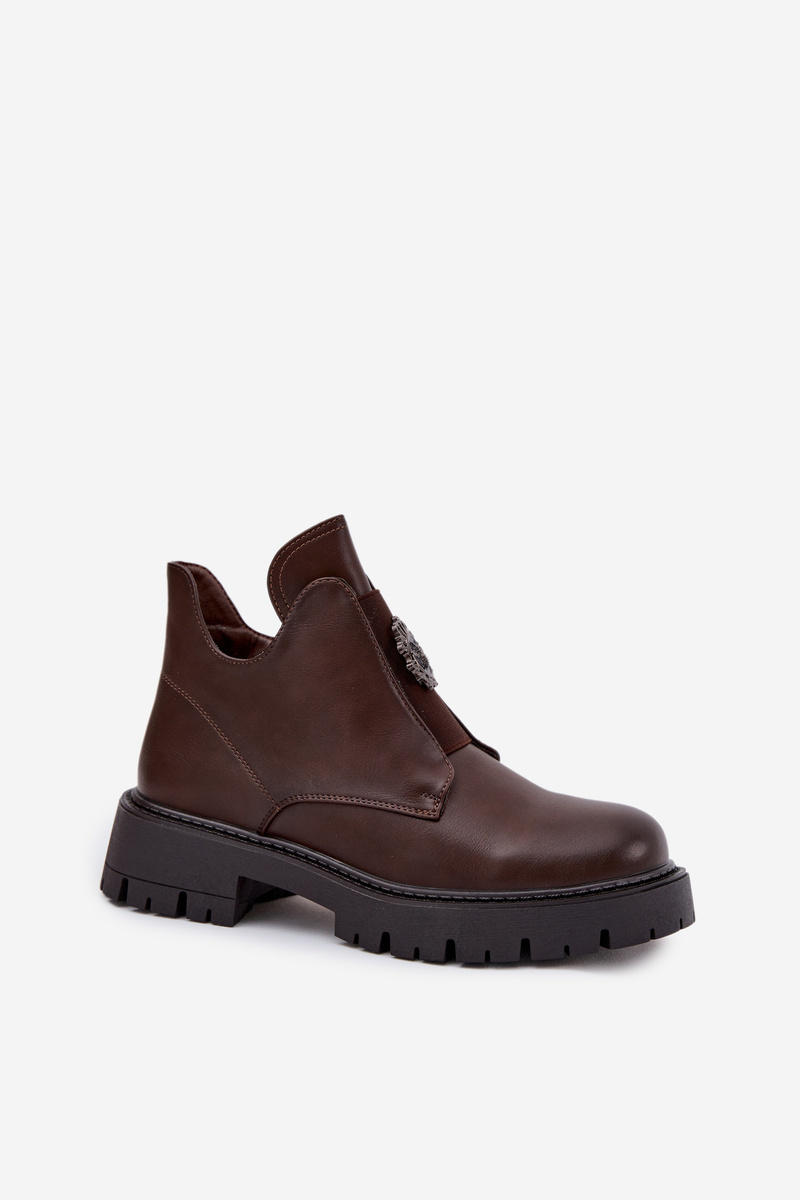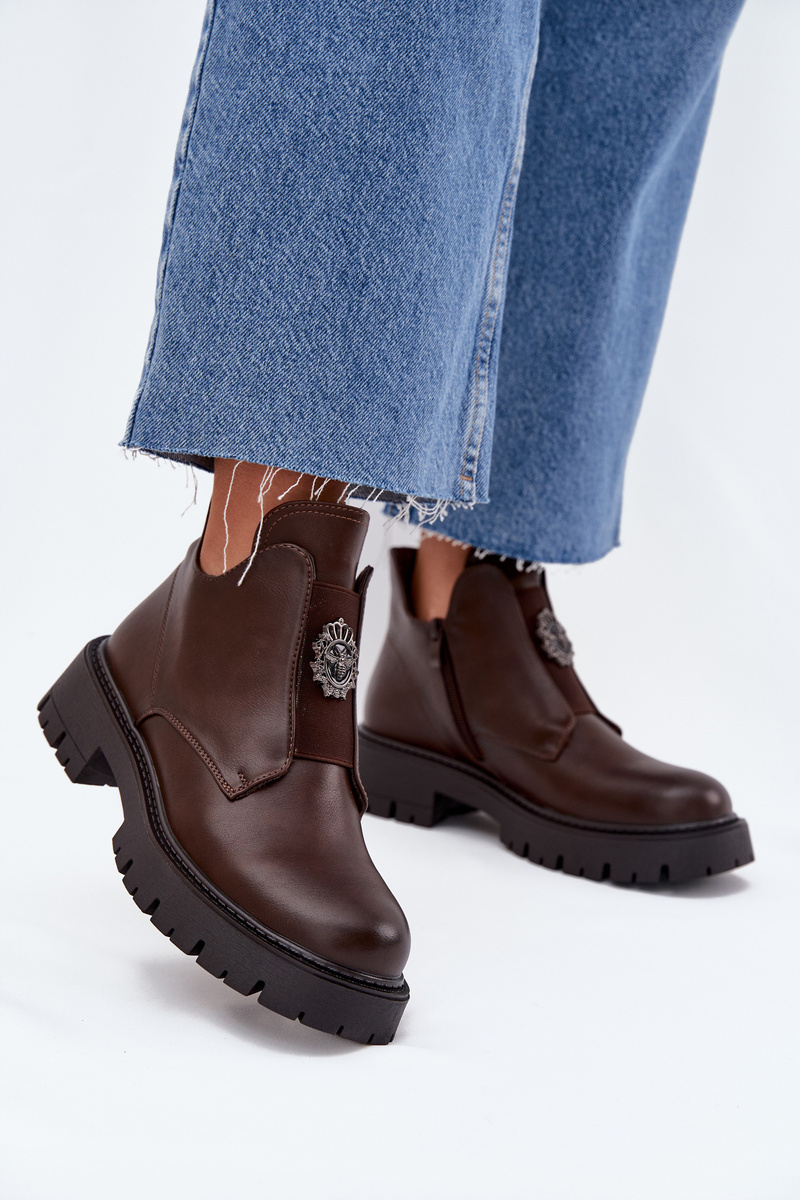 Zateplené Nízke Dámske Čižmy S Ozdobou Na Zips Hnedé Lavira