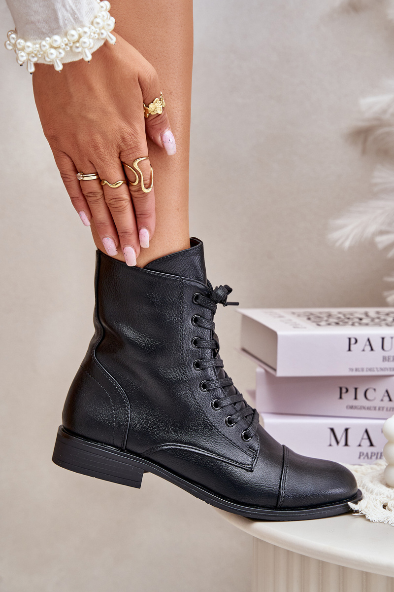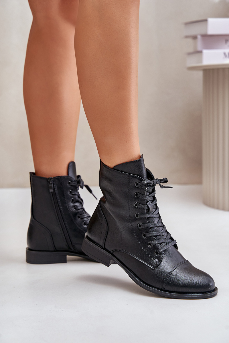 Zateplené topánky z eko kože na zips čierne Leanaris