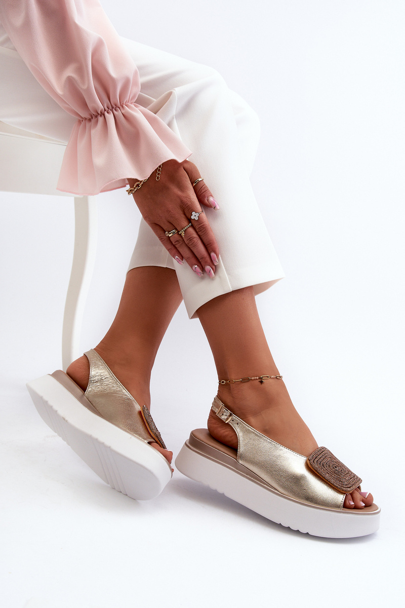 Zazoo 1786 Kožené Dámske Sandále Na Platforme S Ozdobou Zlaté