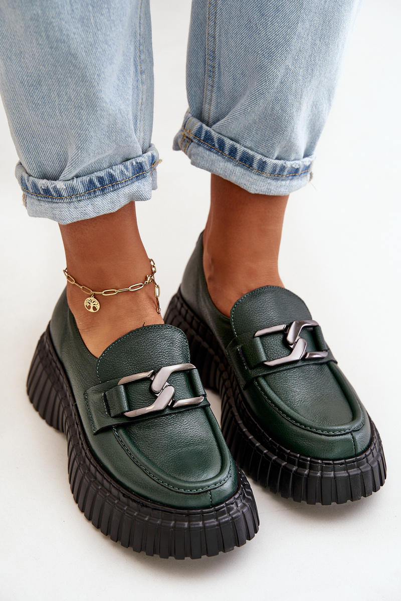 Zazoo 20176 Polobotky Mokasíny Dámske Z Prírodnej Kože Tmavozelené