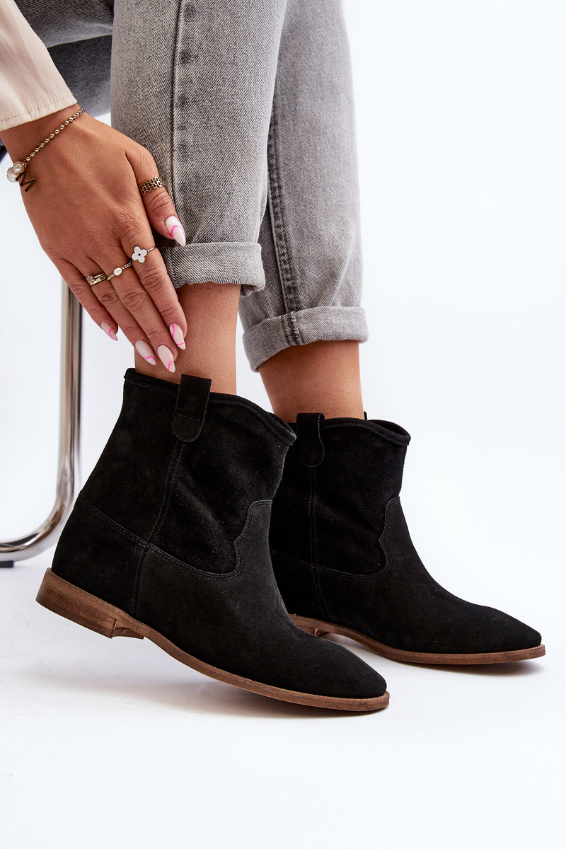 Dámske čižmy vyrobené z prírodného zamatového semiša. Osadené na plochom opätku s ukrytým podpätkom. Zaoblené špičky. Vložka z prírodnej kože poskytne pohodlie počas používania. Tento klasický model sa hodí k mnohým štýlom! Při výběru velikosti se řiďte tabulkou velikostí.