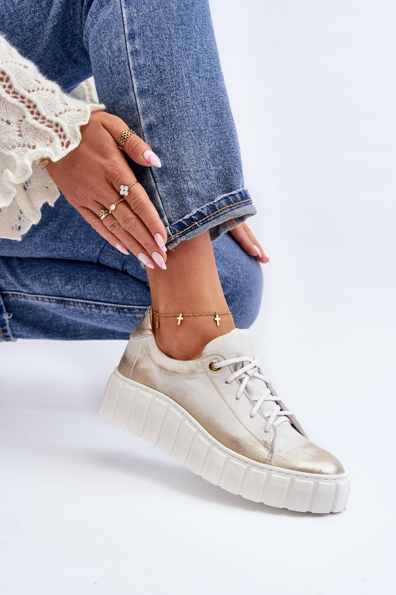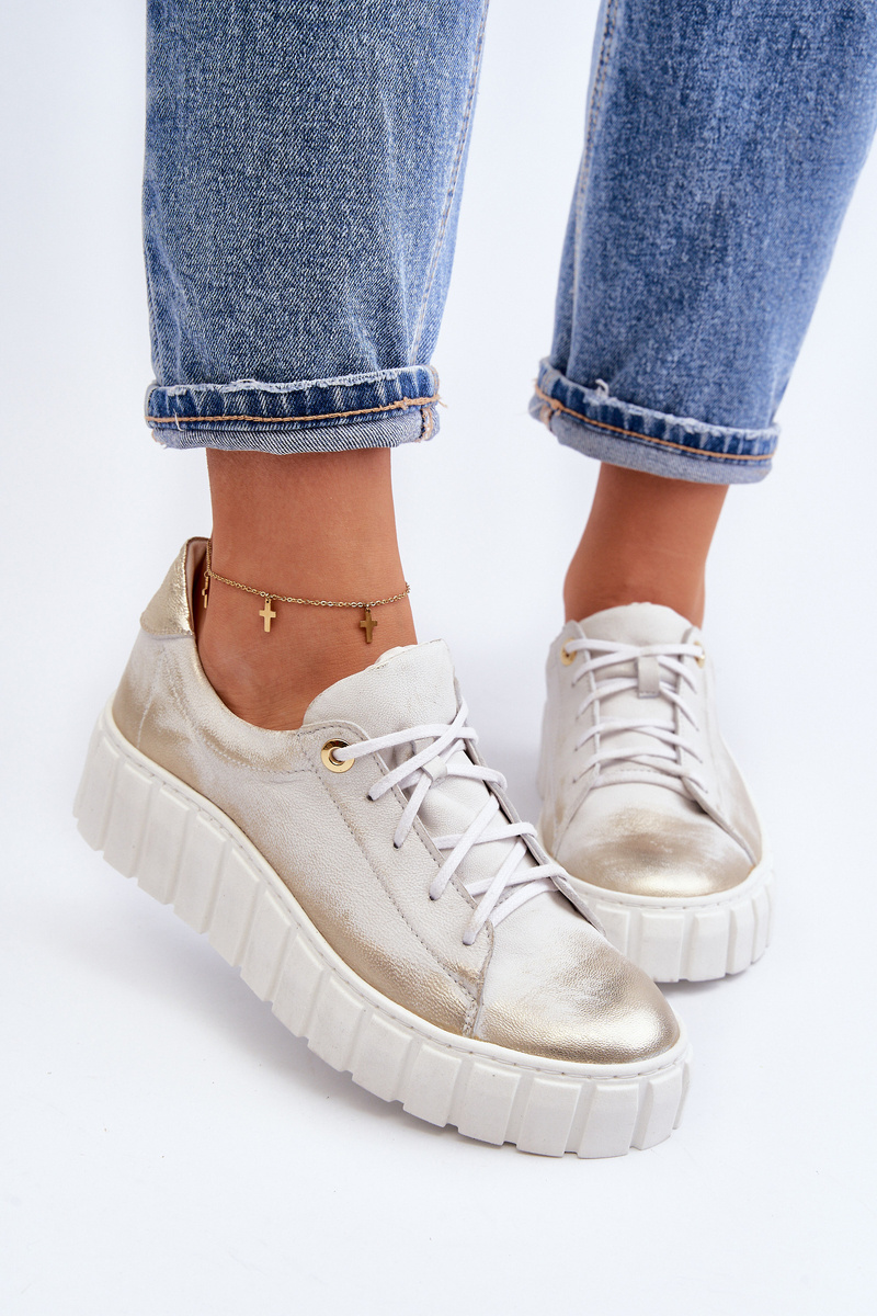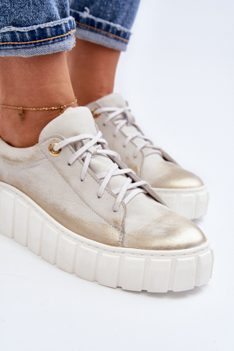Zazoo 2919 Dámske Kožené Poltopánky Na Hrubej Podrážke Zlaté