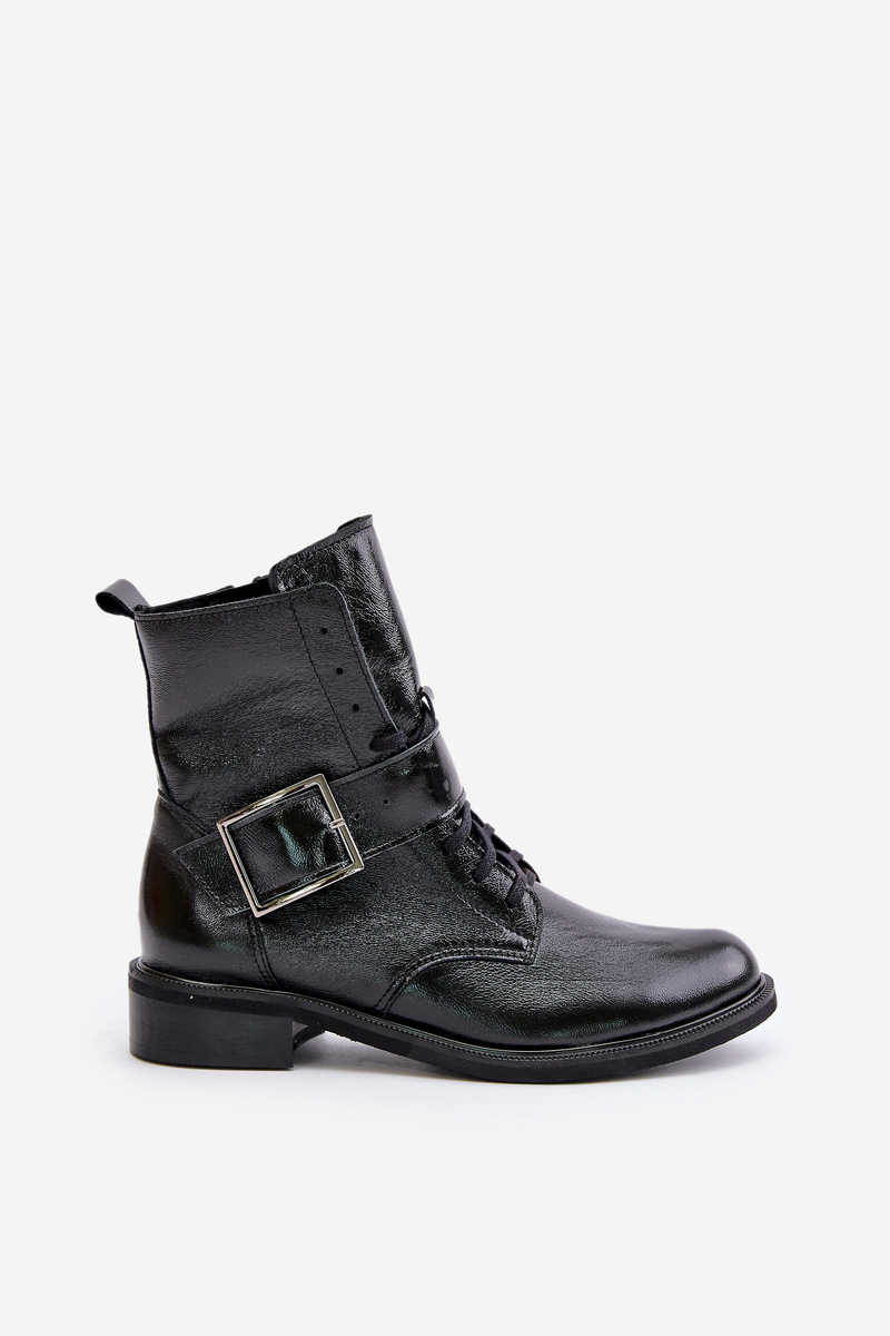 Zazoo 2949 Kožené Čižmy S Sponou Čierne
