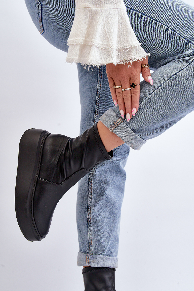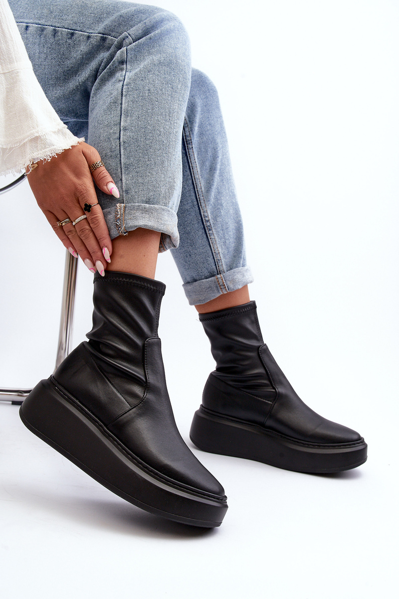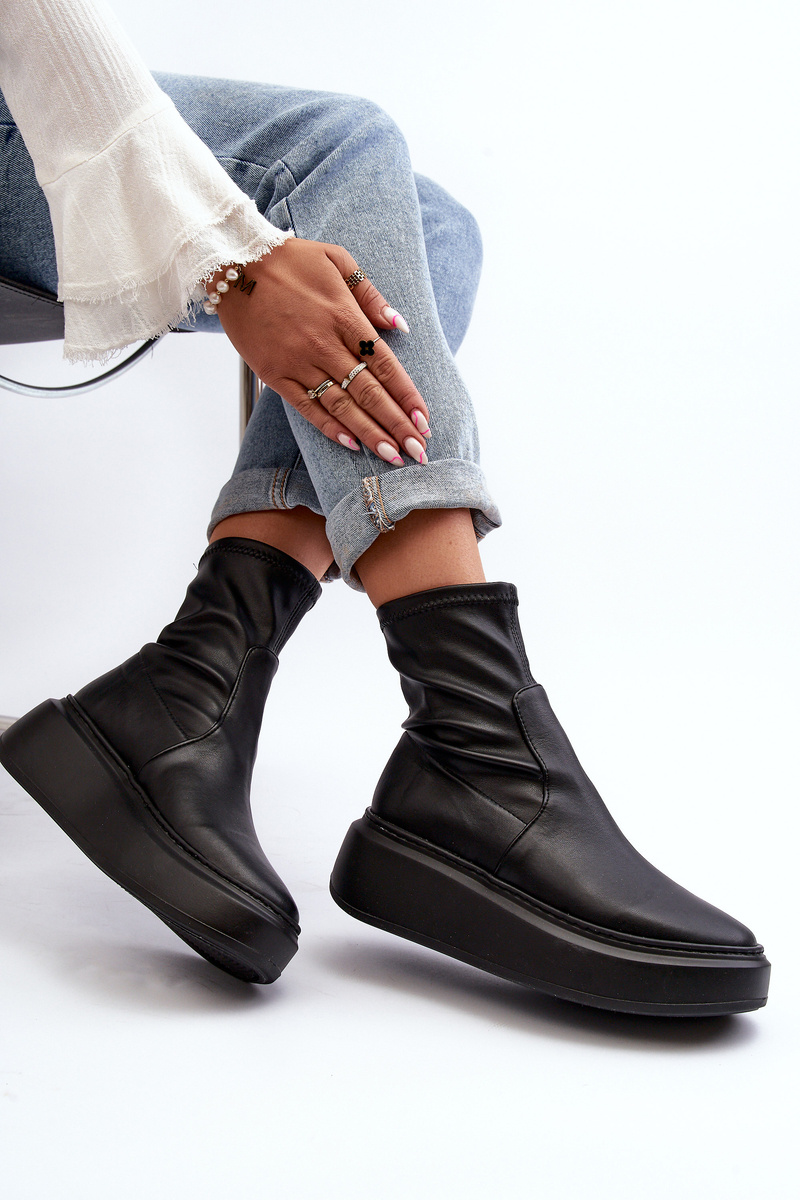Dámske členkové topánky s náplastou na členok. Vyrobené z pravej kože. Nastavené na masívnej platforme. Model na zasúvanie. Zaoblené špičky. Tieto topánky budú sedieť na úzku nohu. Ideálne pre jarný štýl! Při výběru velikosti se řiďte tabulkou velikostí.