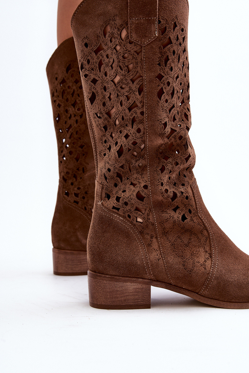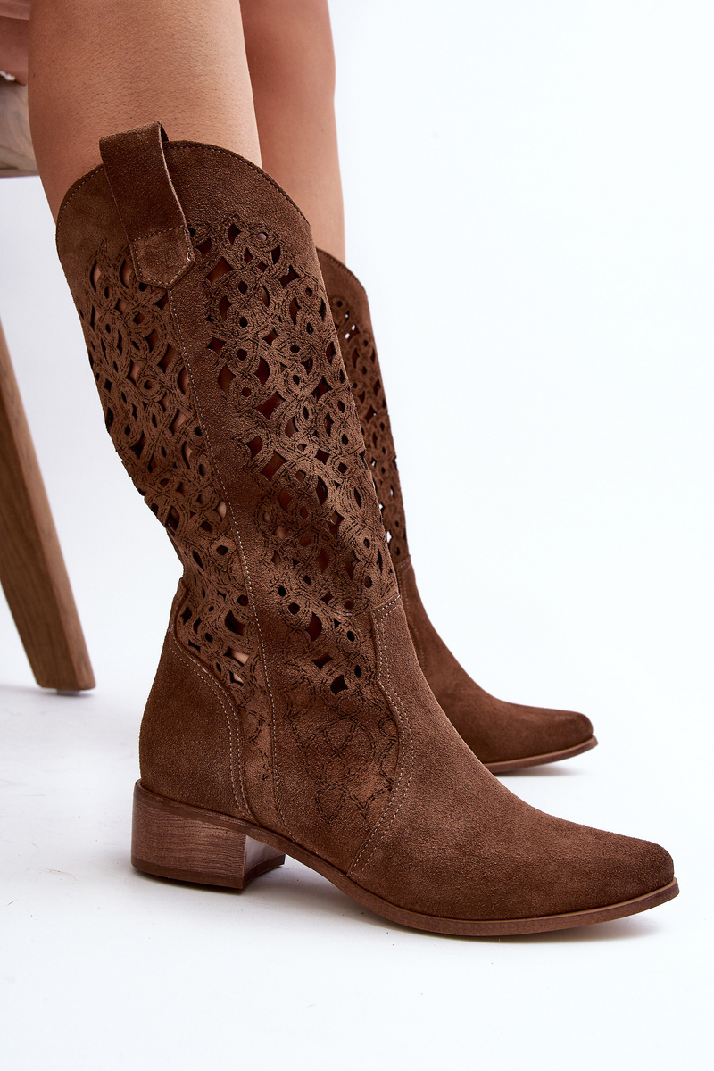 Dámske členkové topánky vyrobené z prírodného zamatového kožu. Zapínajú sa na zips. Štruktúra dosahuje do polovice lýtka. Nízky podpätok zaručuje stabilitu a komfort, a vzor na štruktúre dodáva jemnosť. Kožená stielka zabezpečí komfort počas nosenia. Tieto topánky vyzerajú štýlovo a sú vhodné na mnoho príležitostí. Určite by si ich mala mať! Při výběru velikosti se řiďte tabulkou velikostí.