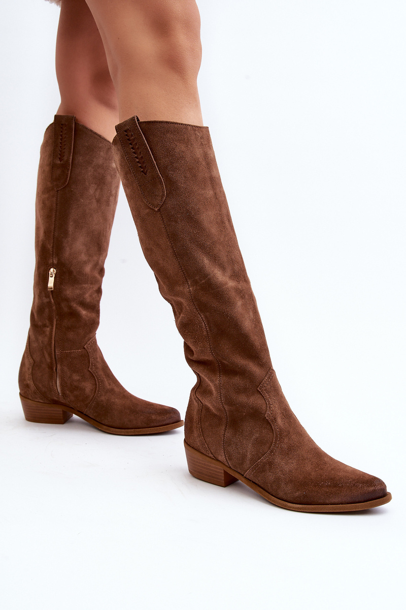 Zazoo 3427 Dámske Semišové Kozáčiky Kowbojky Hnedé