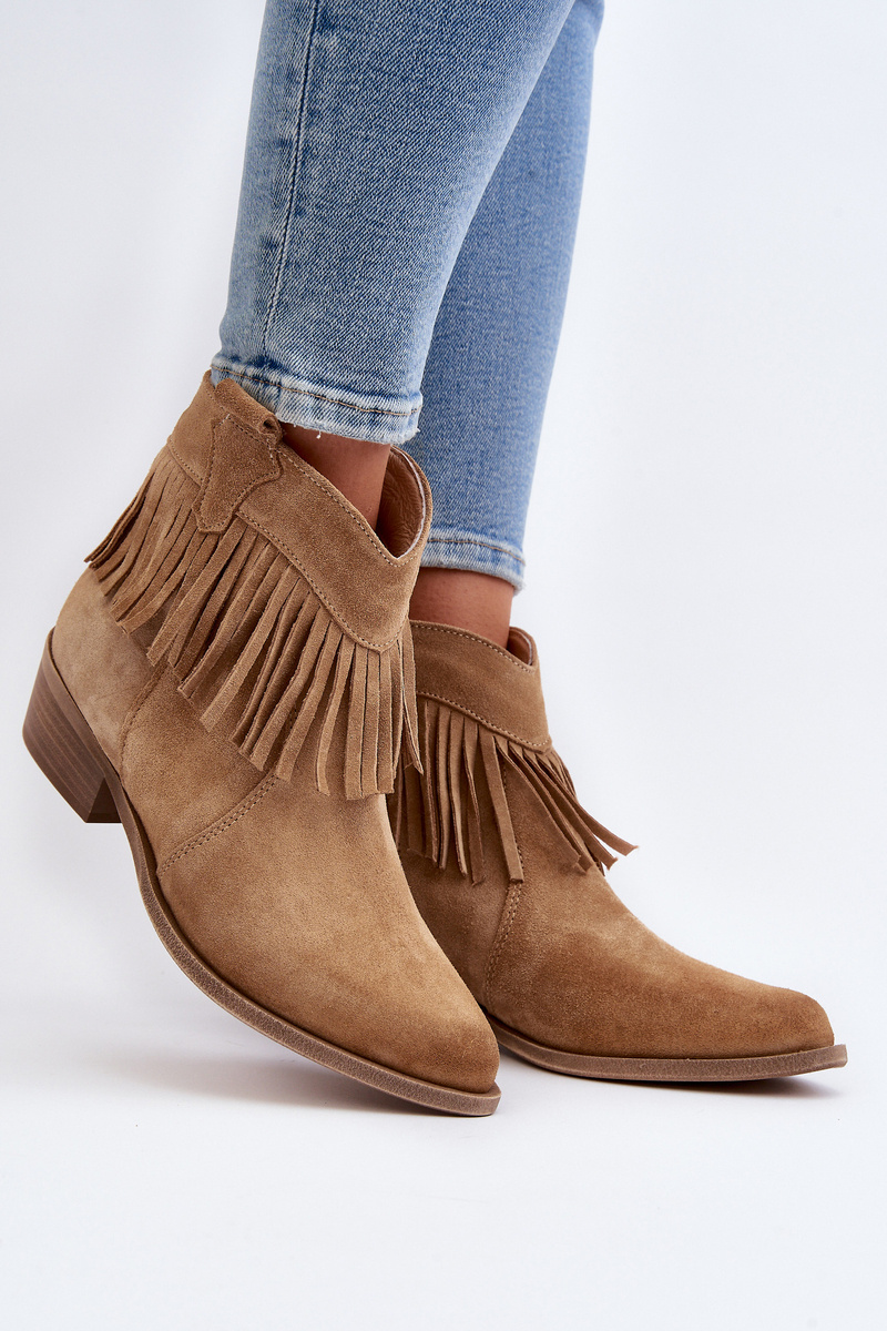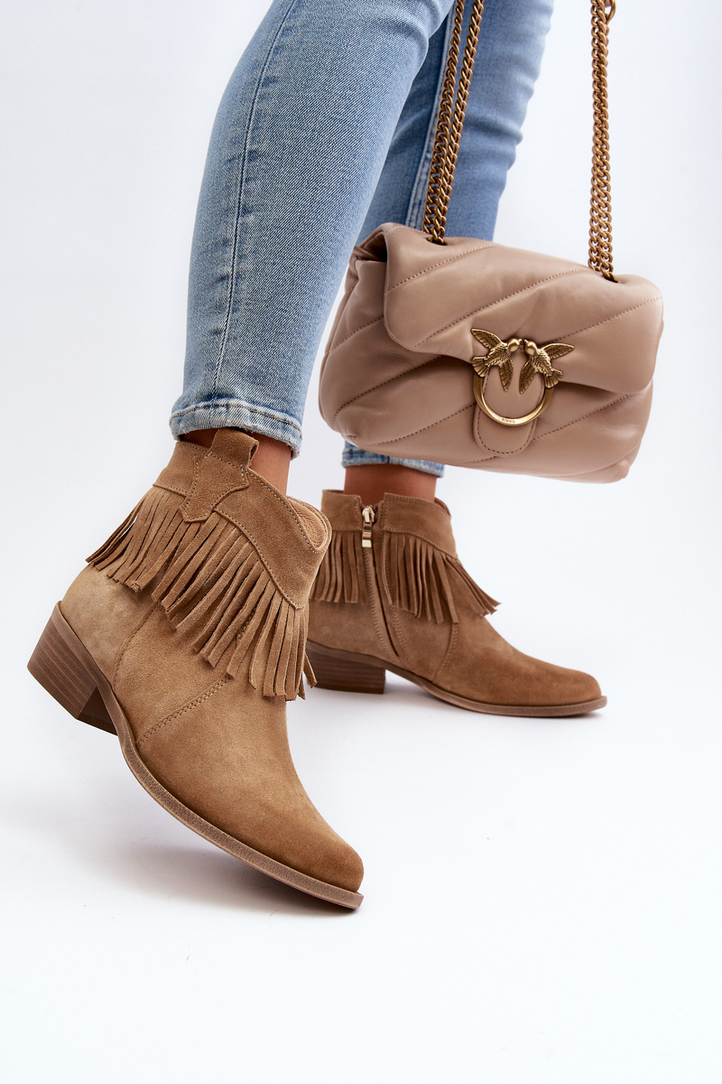 Zazoo 3430 Dámske semišové topánky s franjami béžové