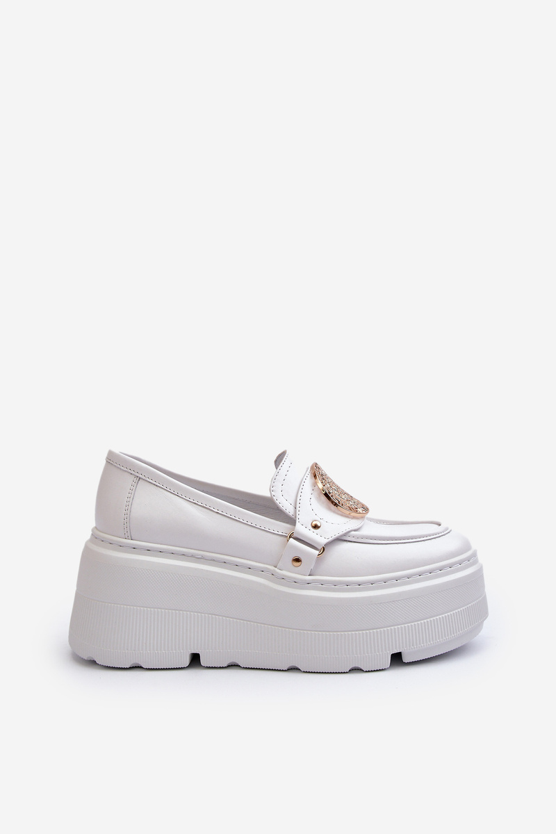 Zazoo 3458 Dámske Kožené Mokasíny s Ozdobou Biele