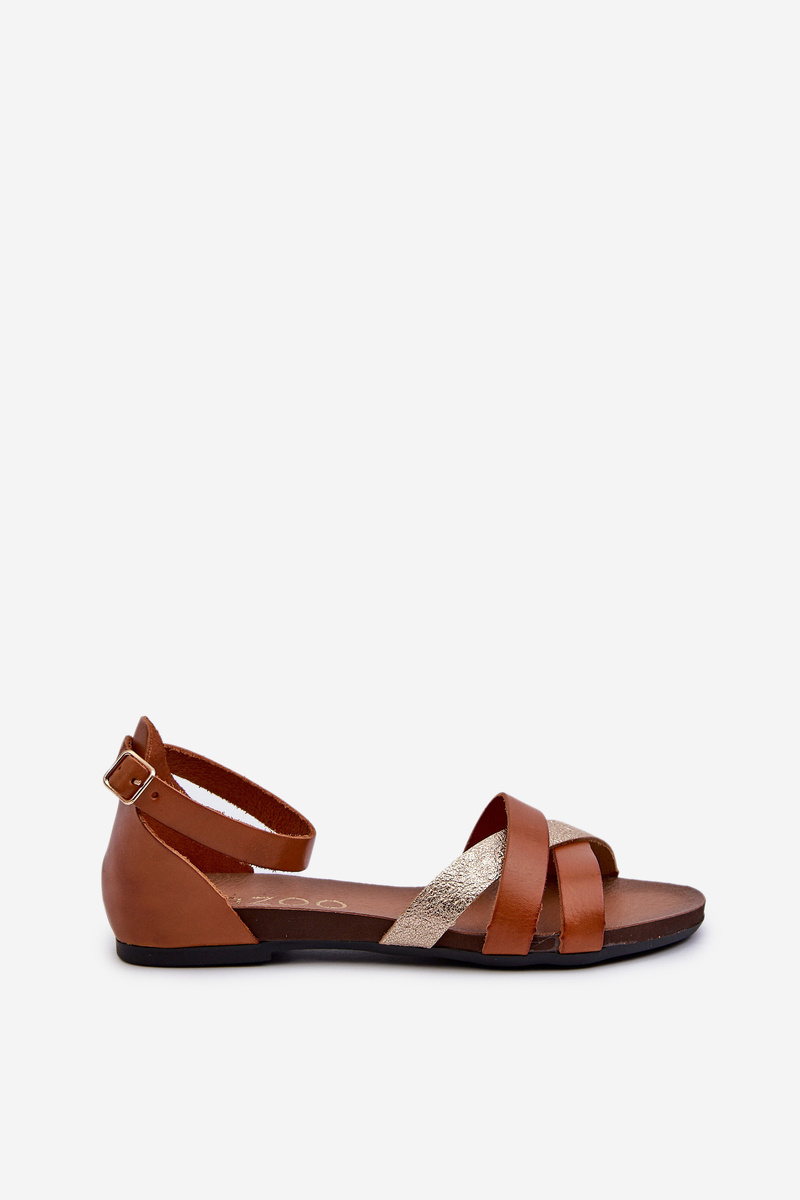 Zazoo 40225 Kožené Sandále S Plochou Pätkou Hnedé