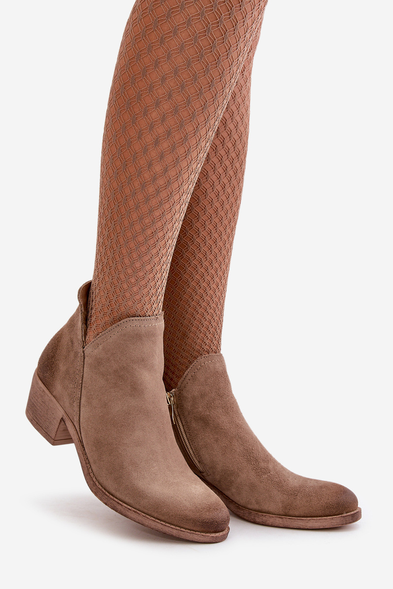 Zazoo 60475 Semišové Čižmy Dámske S Nízkym Opätkom Zateplené Tmavo Béžové