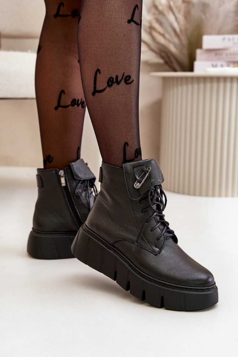 Zazoo 60511 Kožené Čižmy Dámske Na Platforme Zateplené Čierne