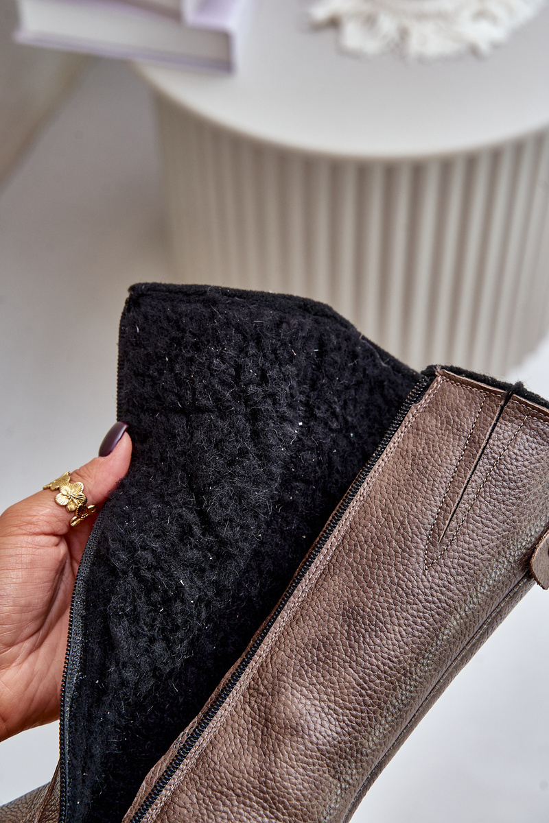 Zazoo 70121 Kožené Dámske Čizmy S Vlnou Hnedé