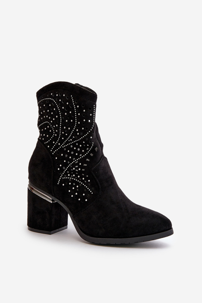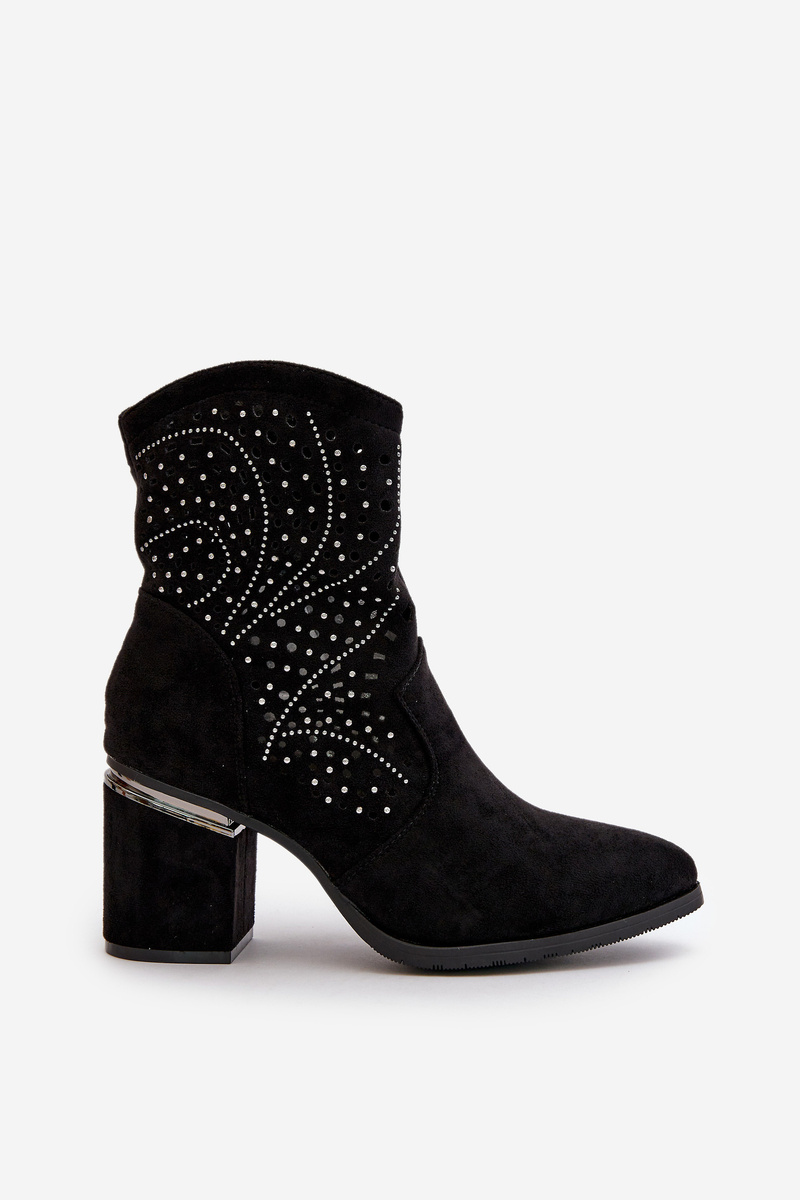 Zdobené Ažúrové Dámske Čižmy Na Opätku Z Eko Semišu Čierne S.Barski HY42-029