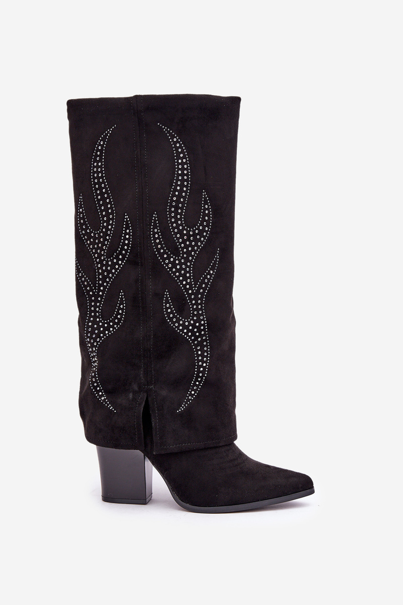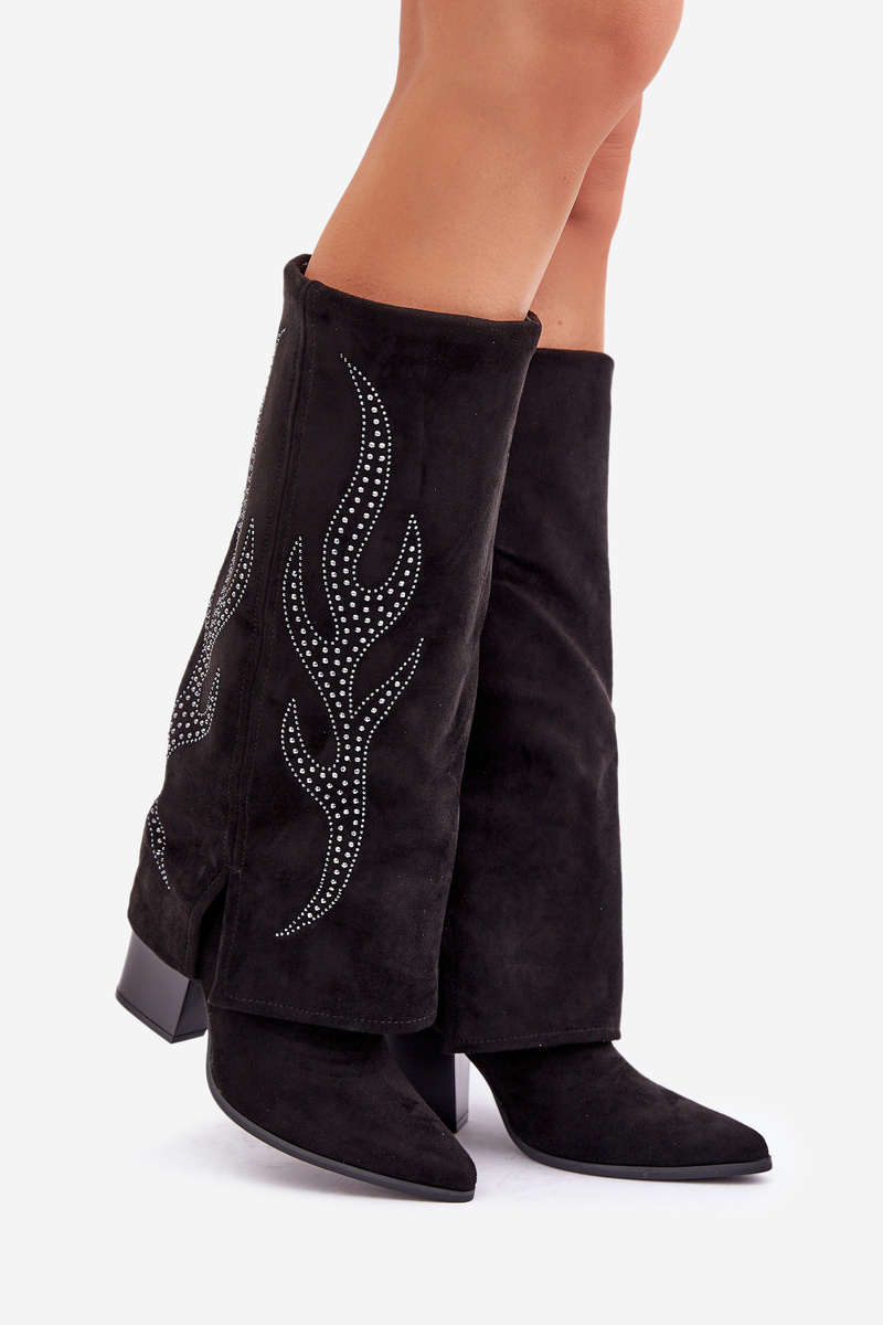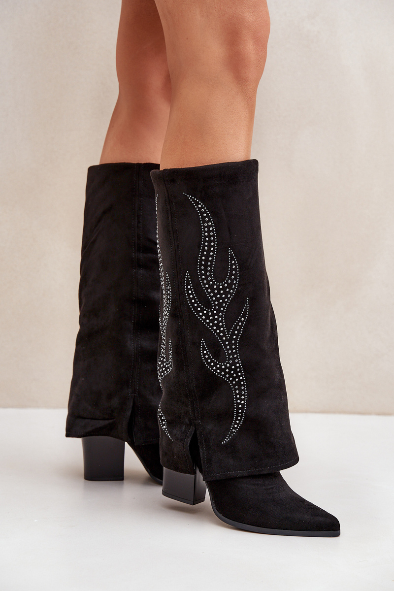 Zdobené čižmy s prevráteným zvrškom na podpätku čierne Ivilta