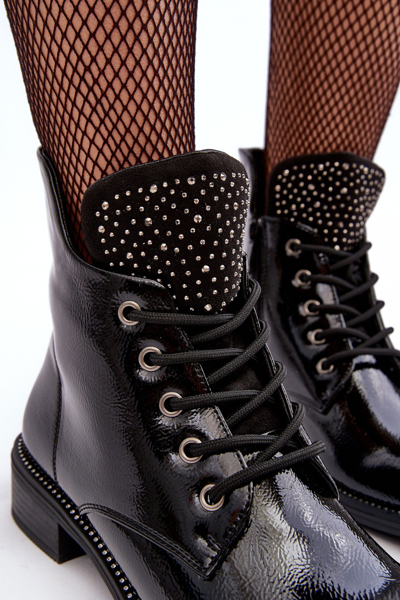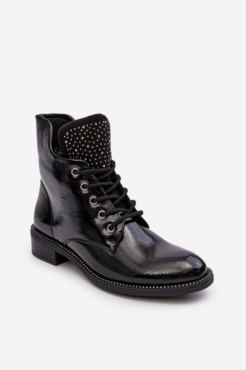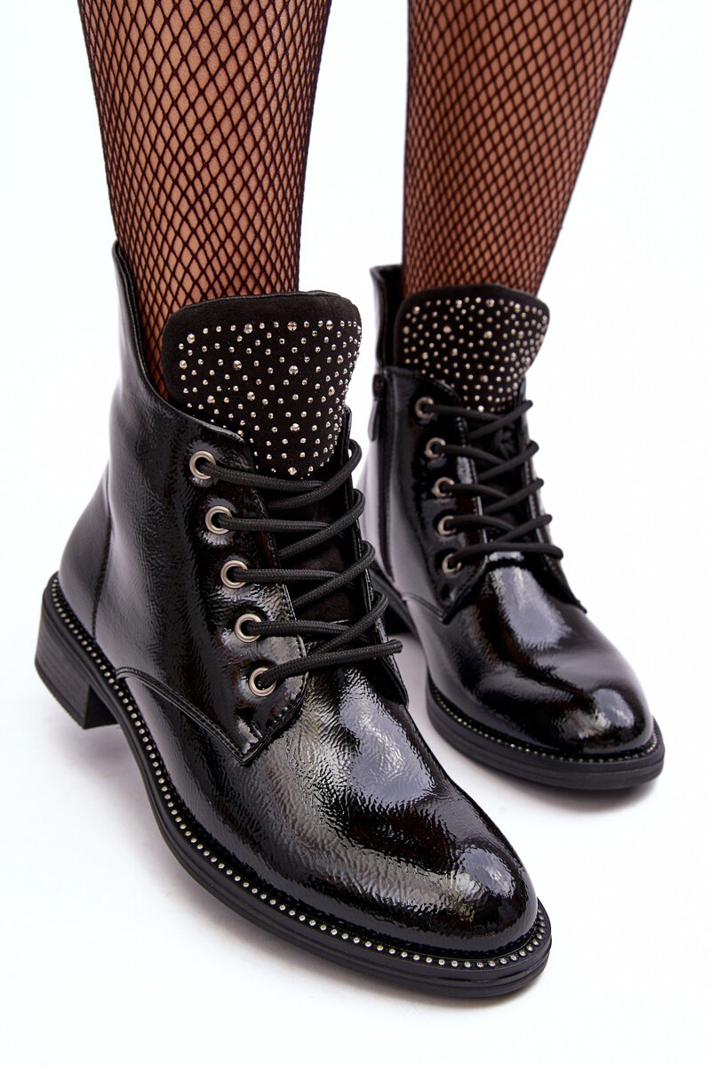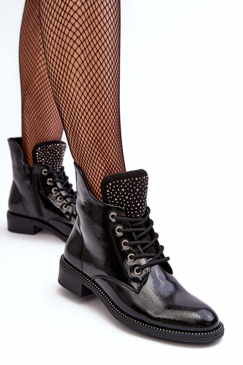 Nízke dámske podpätky zabudované. Vyrobené z ekologickej kože. Jazyk je zdobený malými kamienkami. Tento model je priviazaný a navyše má posúvač na boku. Vnútri izolácie vo forme prikrývky na topánky. Zaoblené prsty na nohách. Stuhnutá päta. Pri výbere veľkosti navrhnite tabuľku veľkosti. /p>