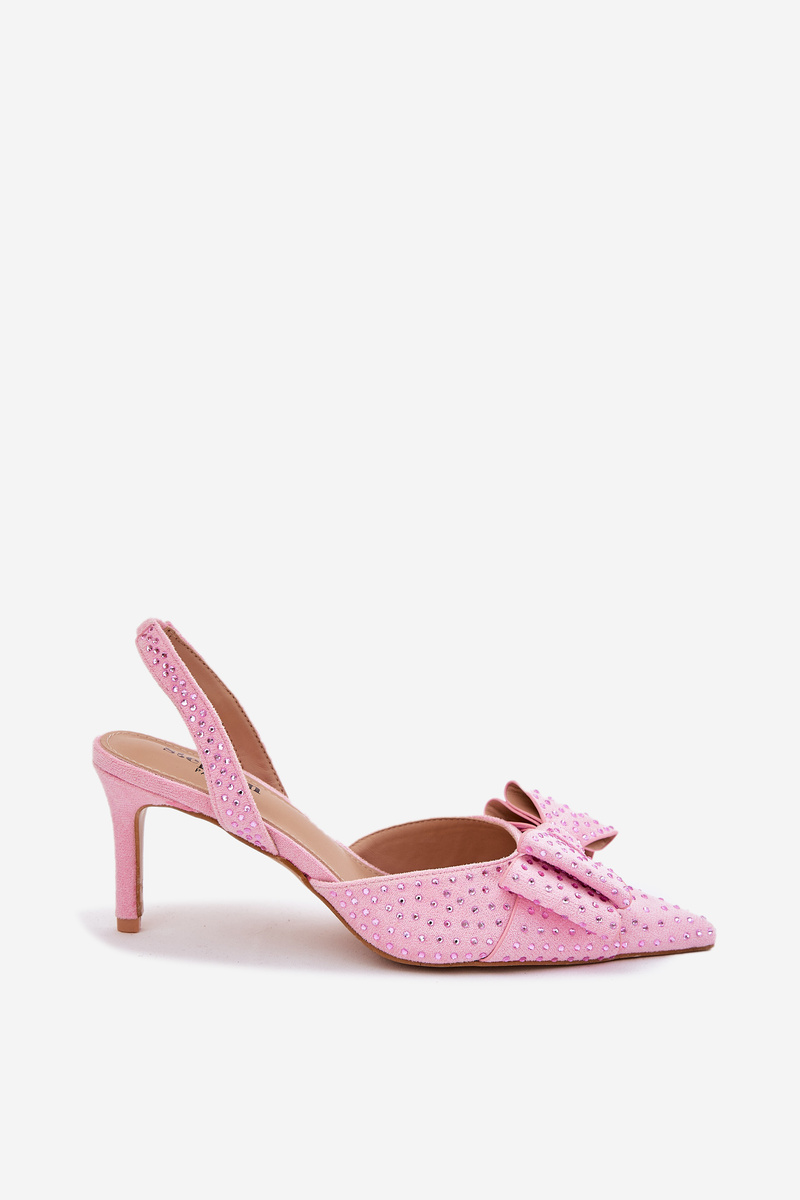 Zdobené Lodičky S Odhalenou Pätou A Mašľou Rúžové Nilandriela
