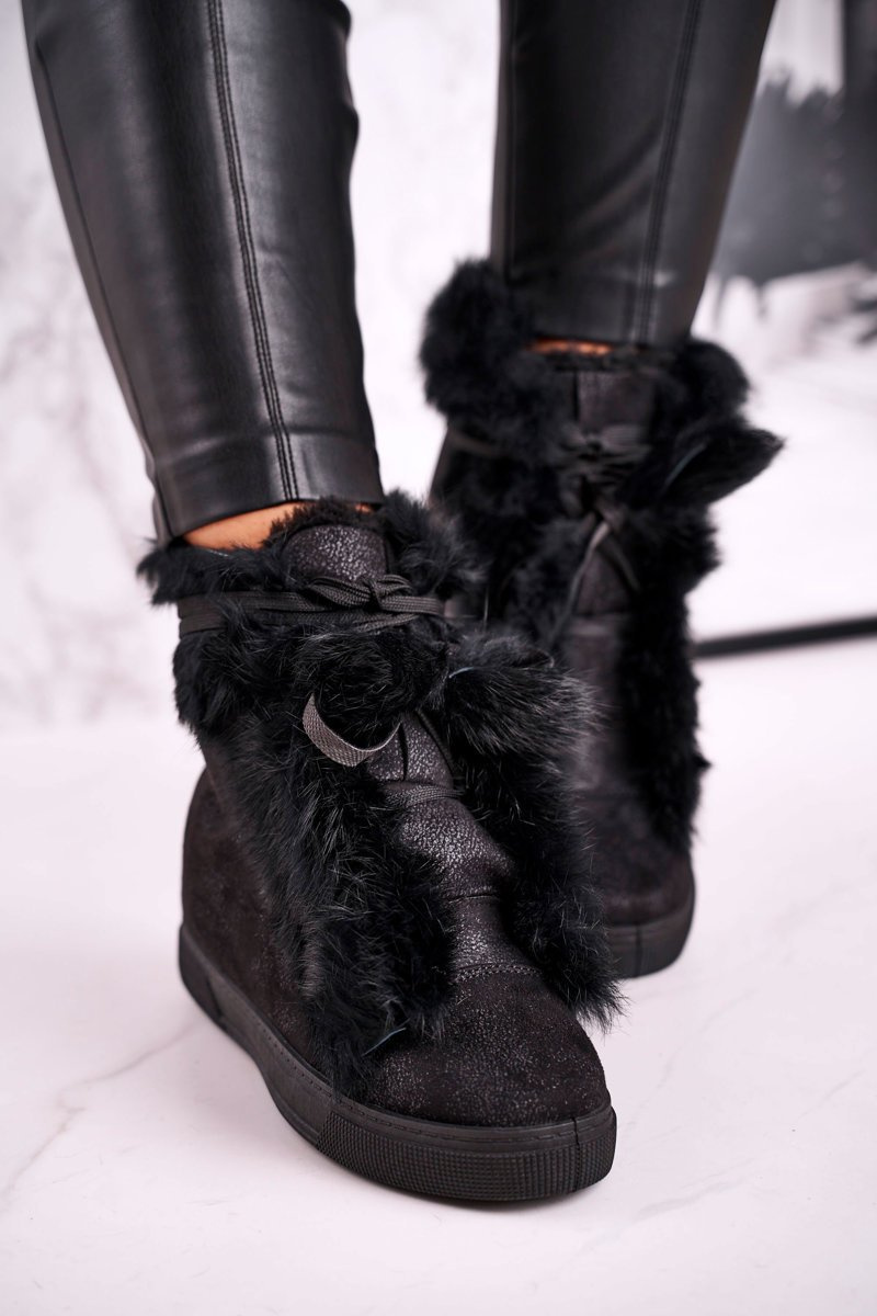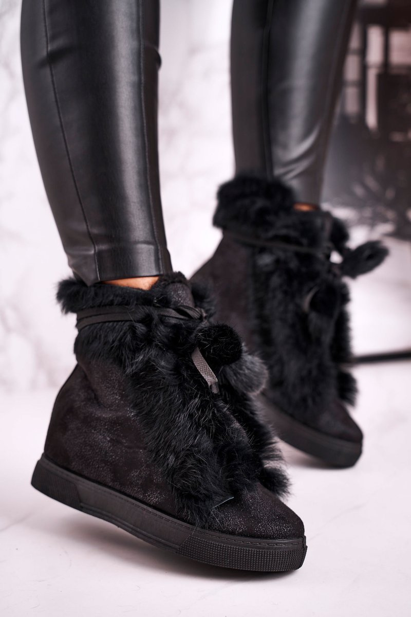 Ženské klinové tenisky s čiernou peknou kožušinou