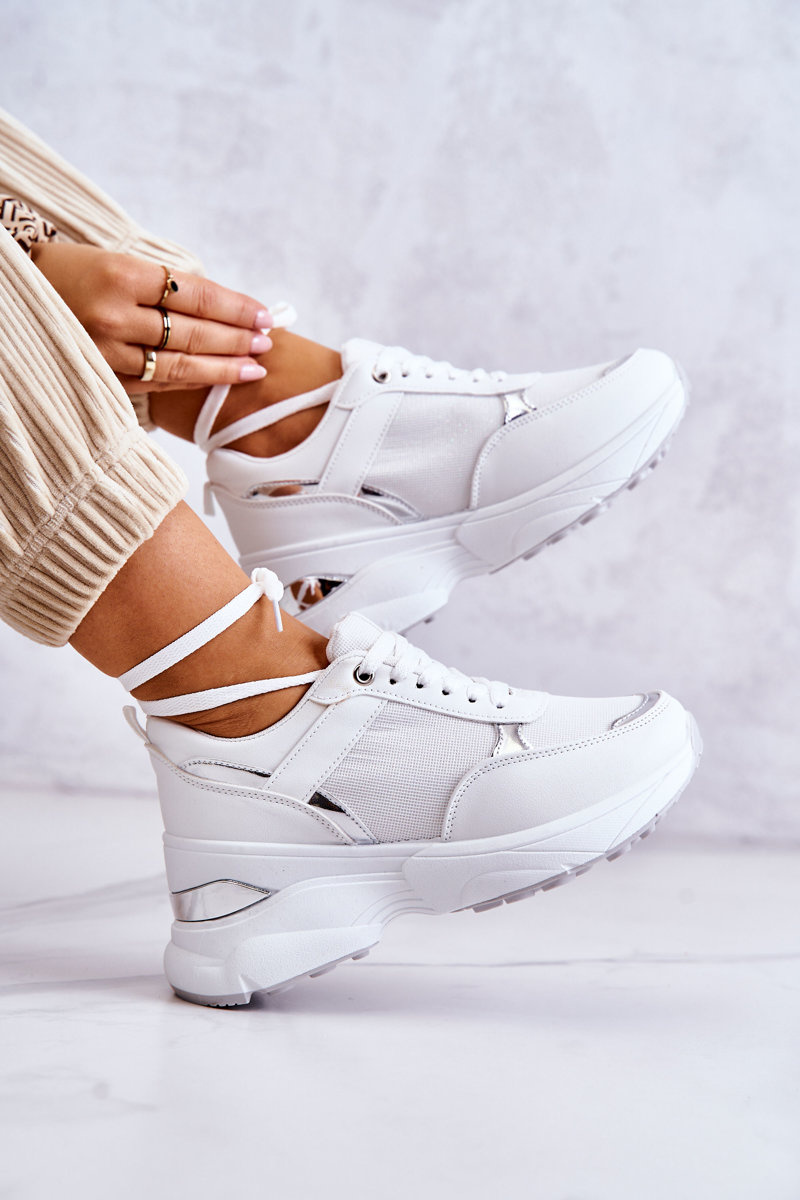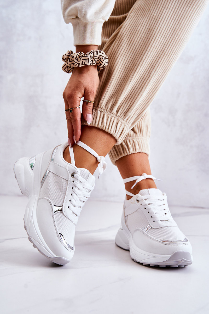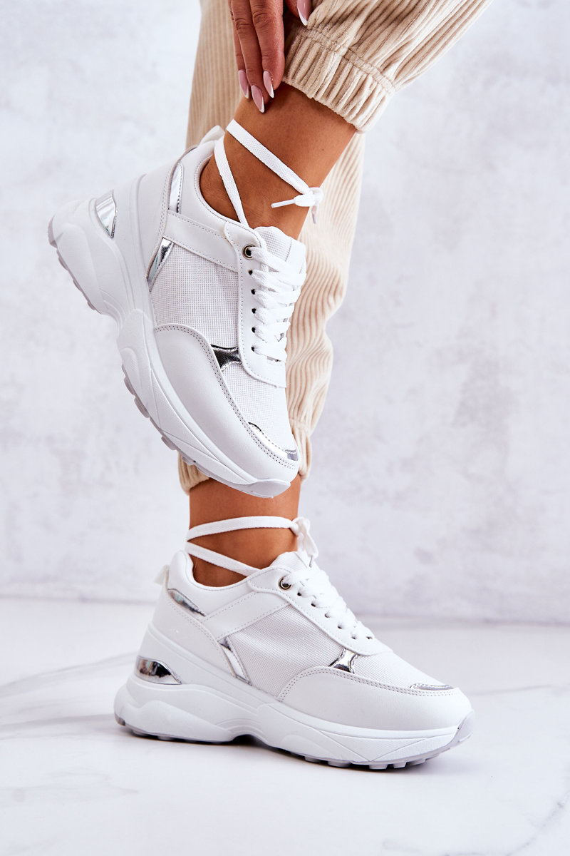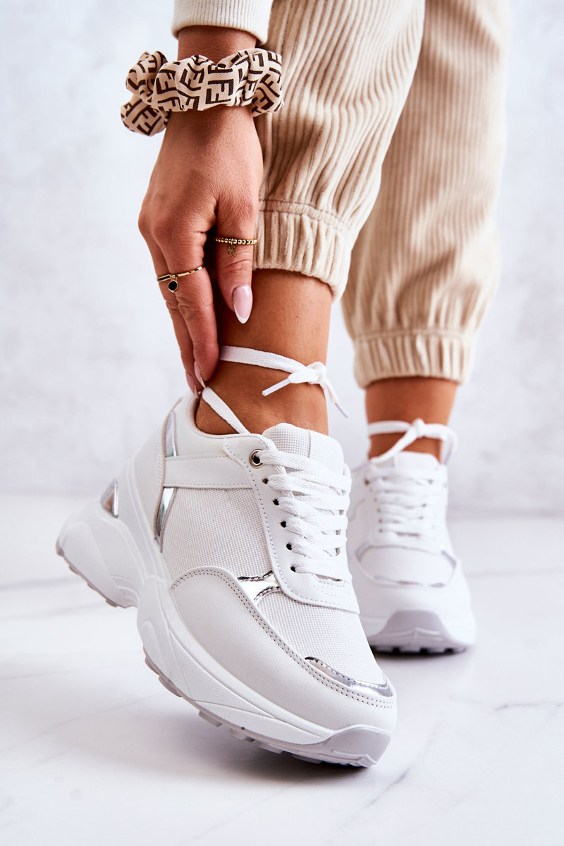 Ženské lesklé športové športové topánky biele aktivity