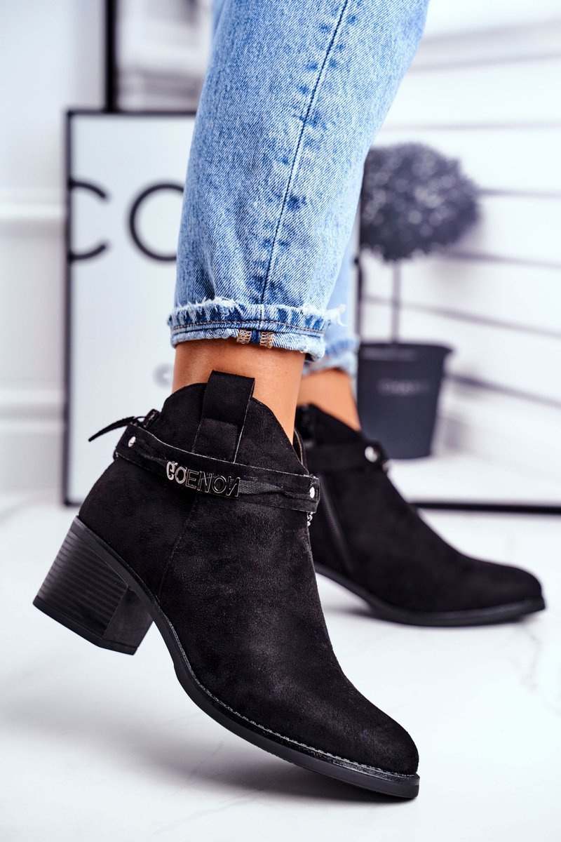 Už sme sa zamilovali! Mohlo by existovať niečo krajšie ako iné topánky? <3 Krásny strih s dekoratívnym pásom a reťazou okolo členku - a ak to nechcete, môžete ho jednoducho vytiahnuť! Roboty založené na stabilnom nízkom stĺpiku. Čižmy vyrobené výlučne z ekologického kože napodobňujúceho semiš. Interiér izolovaný obuvou prikrývkou s jemnými krátkymi štetinami. Uvedenie uľahčí posuvný posúvač na boku. Pri výbere veľkosti navrhnite tabuľku veľkosti.