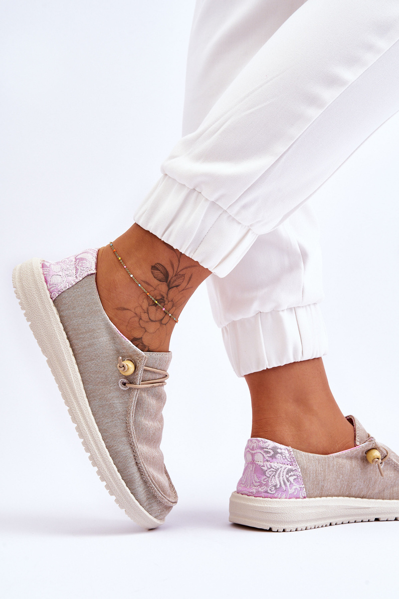 Vkĺzli dámske tenisky vyrobené z textilného materiálu s dekoratívnou zadnou časťou zvršku. Model skĺzol elastickými pásmami napodobňujúcimi šnúrky. Tenisky boli zabudované na jemnú plastovú plošinu. Vložka do tejto obuvi je vyrobená z peny. Pri výbere veľkosti navrhnite tabuľku veľkosti. p>