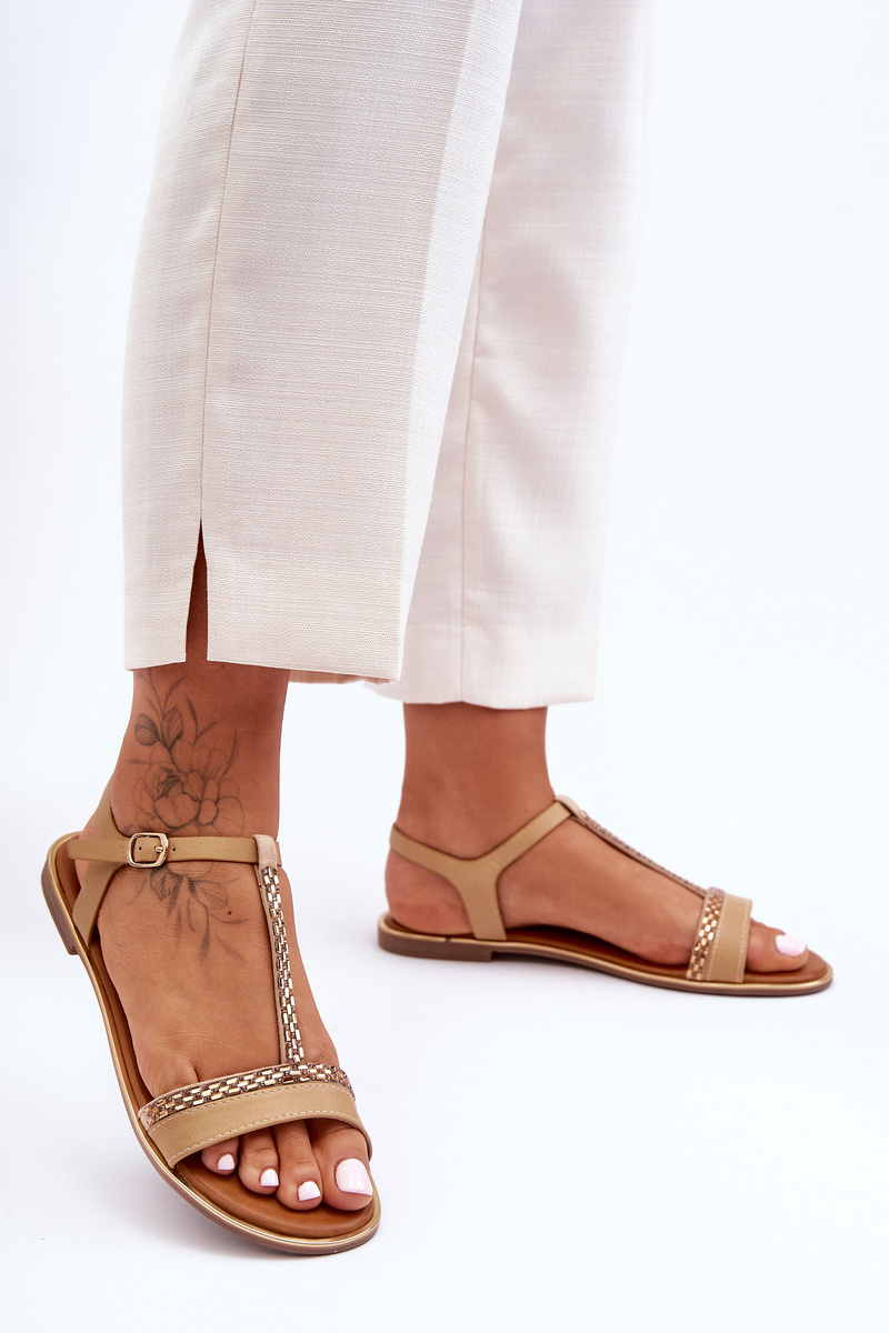 Ženské sandále s béžovou pennou zirkónmi
