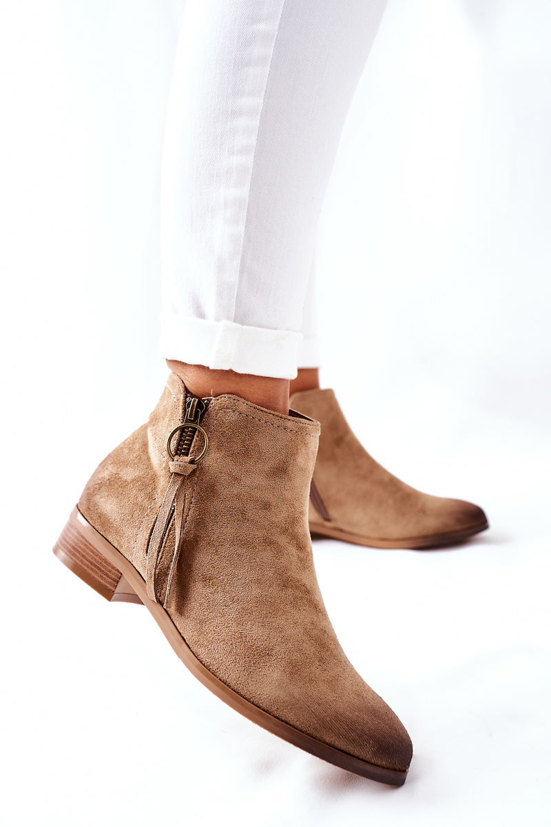 Boots vyrobené z Ekozamszu dokonale zodpovedajú mnohým ženským štylizovaniu. Majú na vonkajšej strane dekoratívnu sponu. Interiér topánok bol pokrytý obuvou prikrývkou, ktorá zaručí teplo. Uvedenie uľahčí posuvný posúvač na boku. Pri výbere veľkosti navrhnite tabuľku veľkosti.
