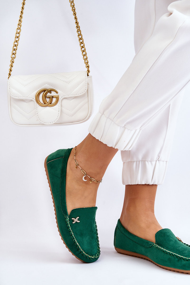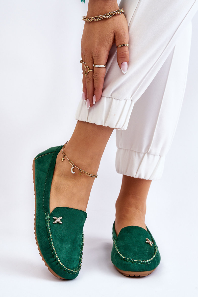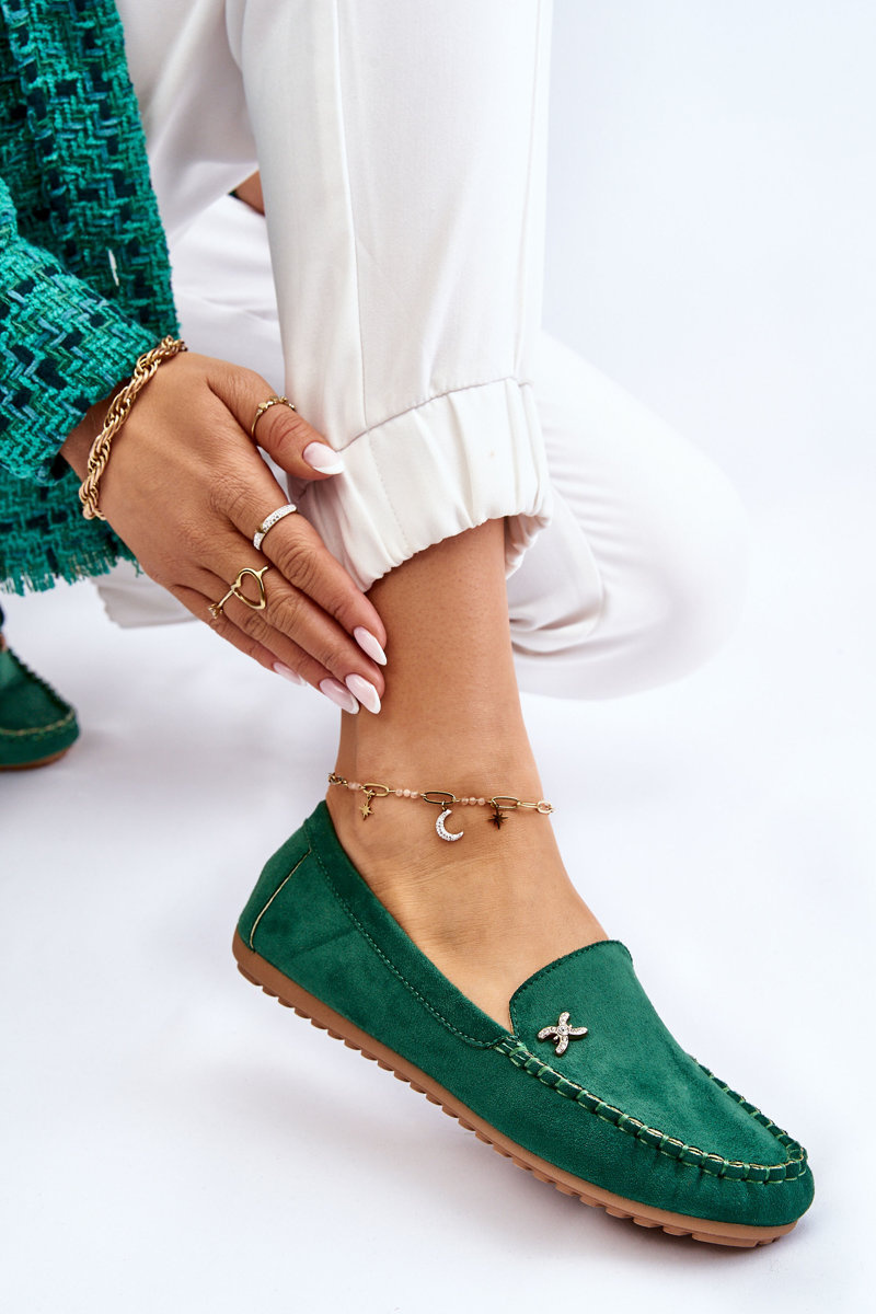 Ženské semišové mokasíny s dekoráciou zelenej Leah