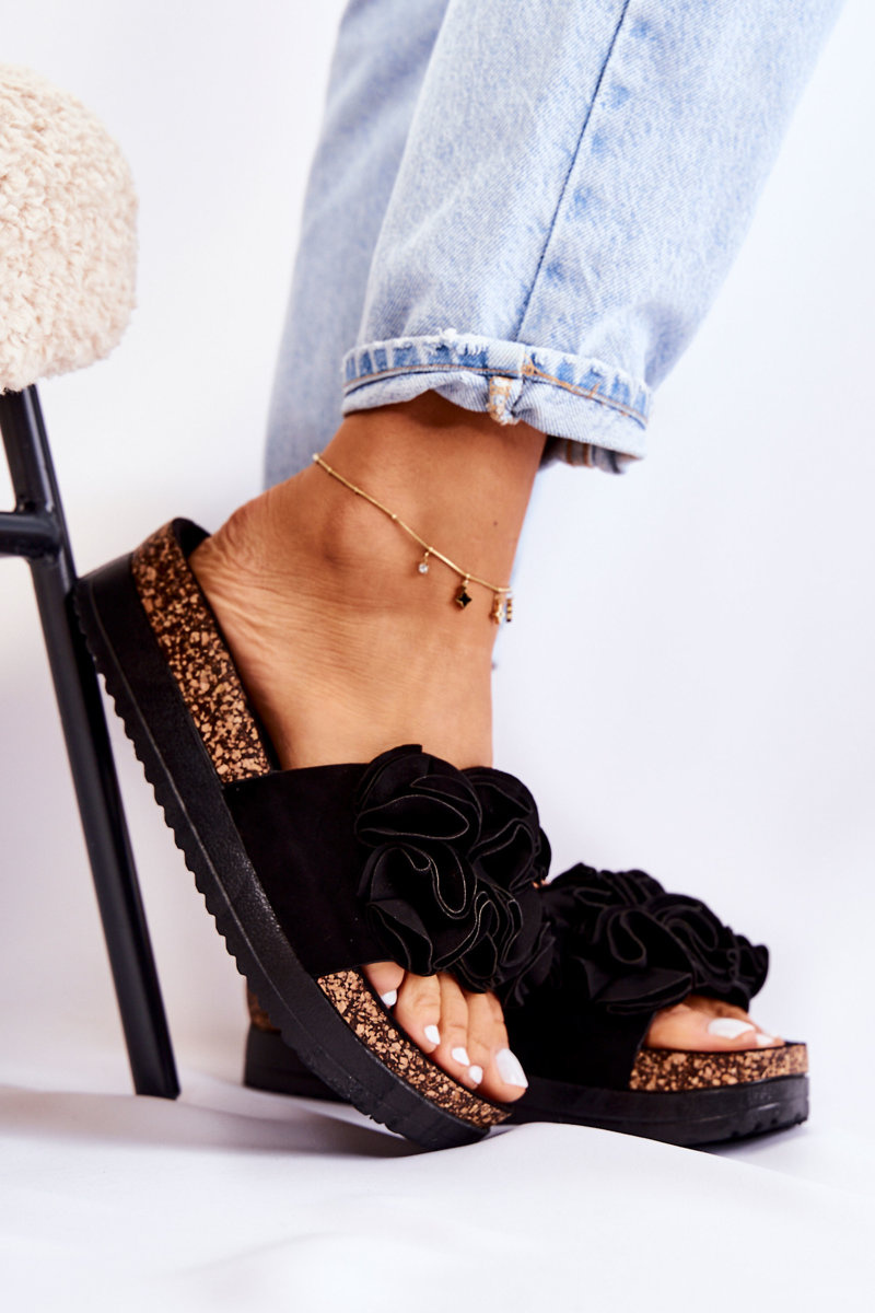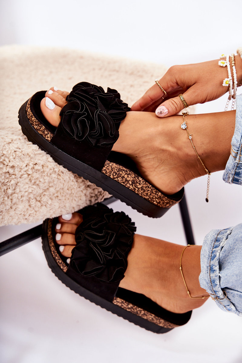 Klasické dámske papuče na masívnej plošine vyrobenej z korku a plastu. Na prednej strane je šitá dekorácia s ekologickým semišom. Profilovaná vložka je vhodná na použitie aj počas celého dňa. Posuvný model. Už už nečakajte a kúpte si ešte dnes! Mali by ste ich mať! Pri výbere veľkosti navrhnite tabuľku veľkosti. p>