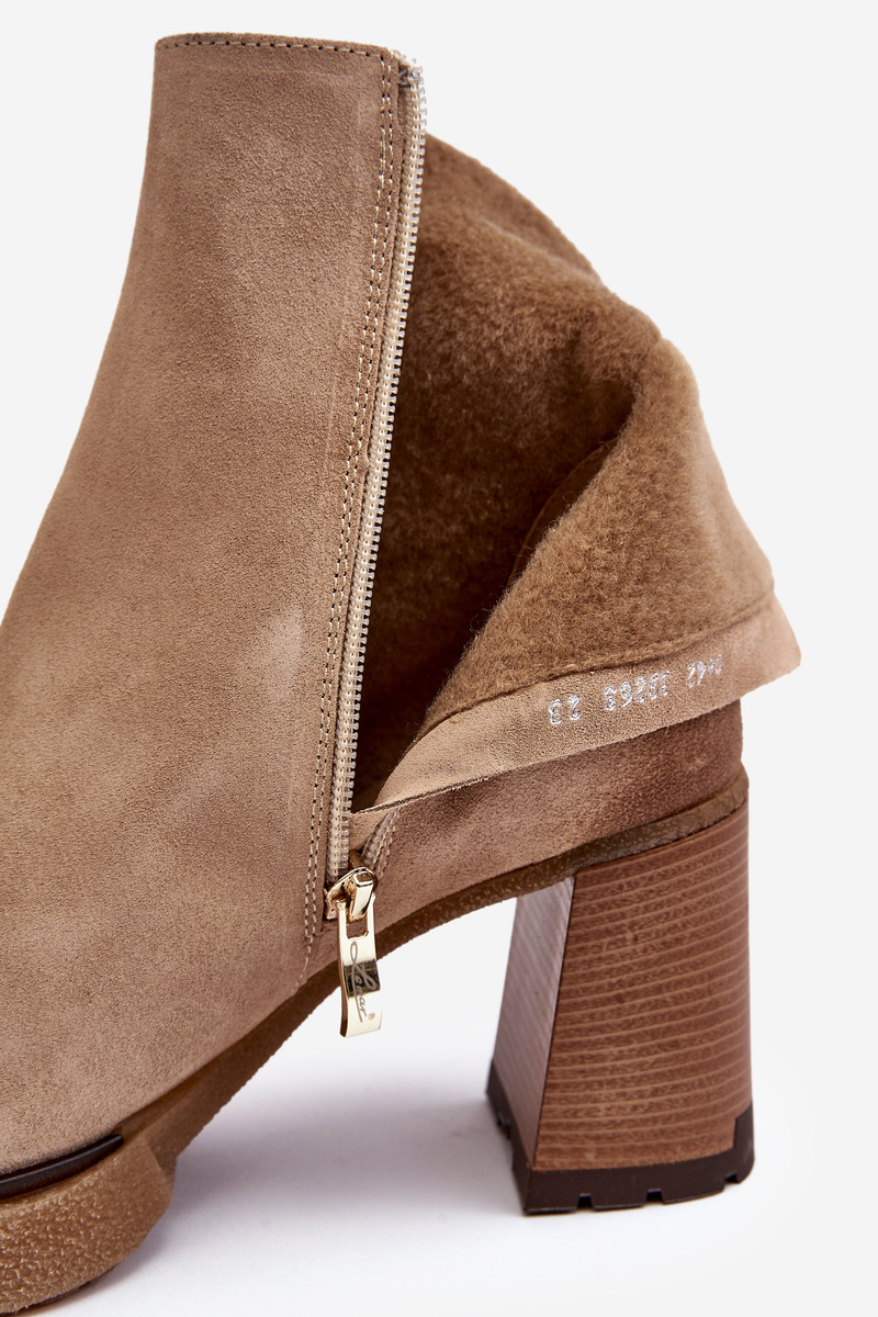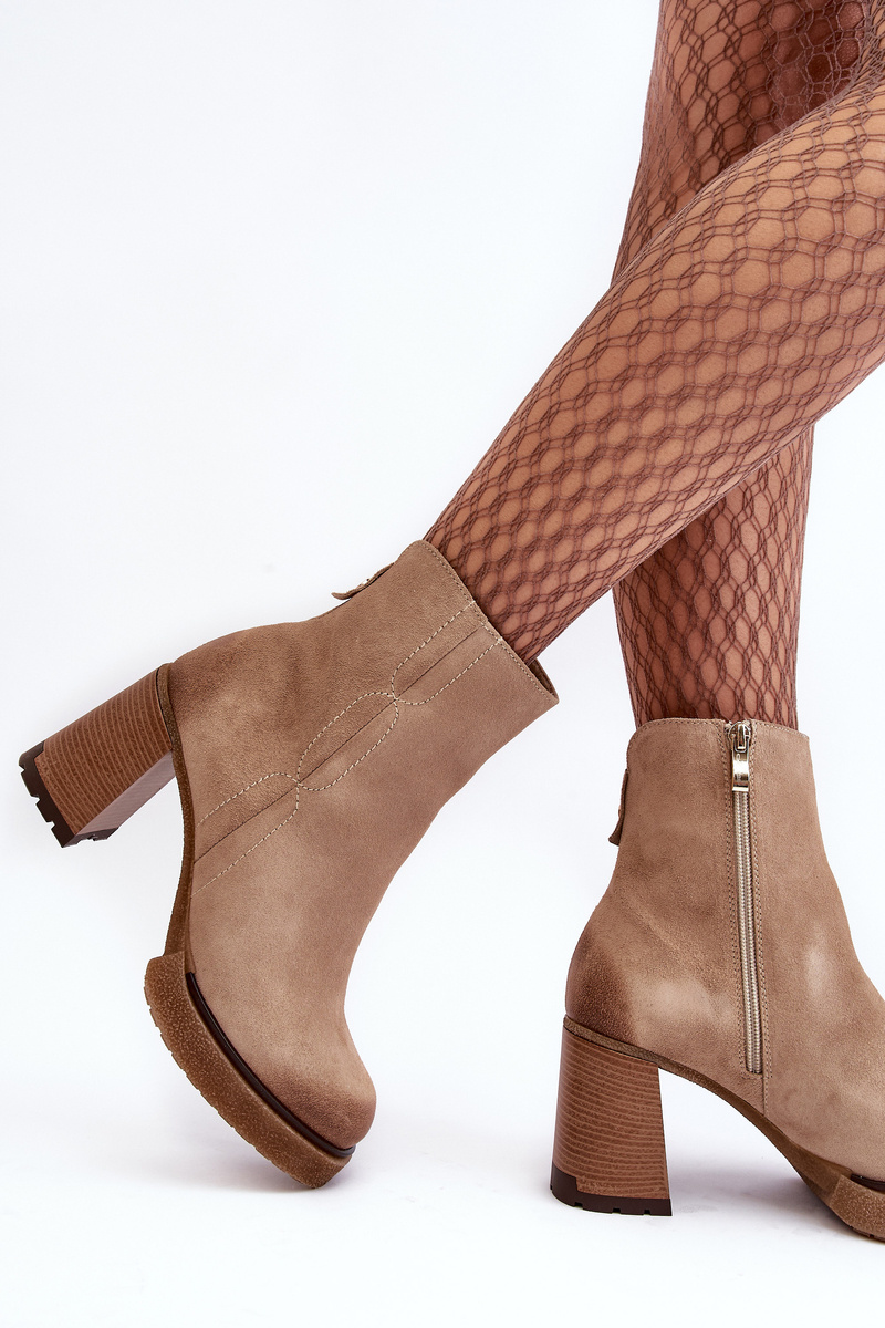 Dámske topánky vyrobené z prírodnej kože. Podpätky zabudované vo forme príspevku. Vo vnútri izolovanej s obuvou prikrývkou. Tento model je pripevnený posúvačom na boku. Zaoblené prsty na nohách. Stuhnutá päta. Ideálne pre jesenné a zimné štylizácie. Pri výbere veľkosti postupujte podľa tabuľky veľkosti