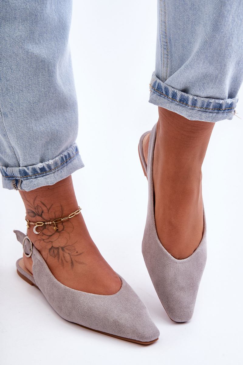 Unikátne ženské baleríny majú otvorenú pätu a charakteristickú, predĺženú prsty. Boli vyrobené z ekologického semišu. Majú nastaviteľný opasok pripevnený prackou. Eco Leather Insert zaistí pohodlie počas používania. Baleríny majú plochú pätu a podrážku nekričiny. Pri výbere veľkosti navrhnite tabuľku veľkosti. p>