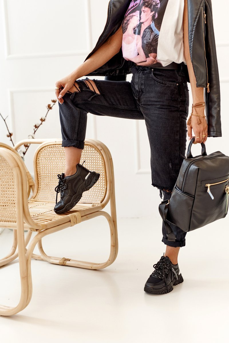 Dámske tenisky na masívnej podrážke. Topánky sú vyrobené výlučne z ekologickej kože. Vložka z mäkkého materiálu poskytne pohodlie a podrážka niekoľkých centimetrov zdvihne vašu postavu. Módny strih doplní mnohé z vašich štylizovaných. Nezabudnite skontrolovať celú našu zbierku športových topánok. Pri výbere veľkosti postupujte podľa tabuľky veľkosti.