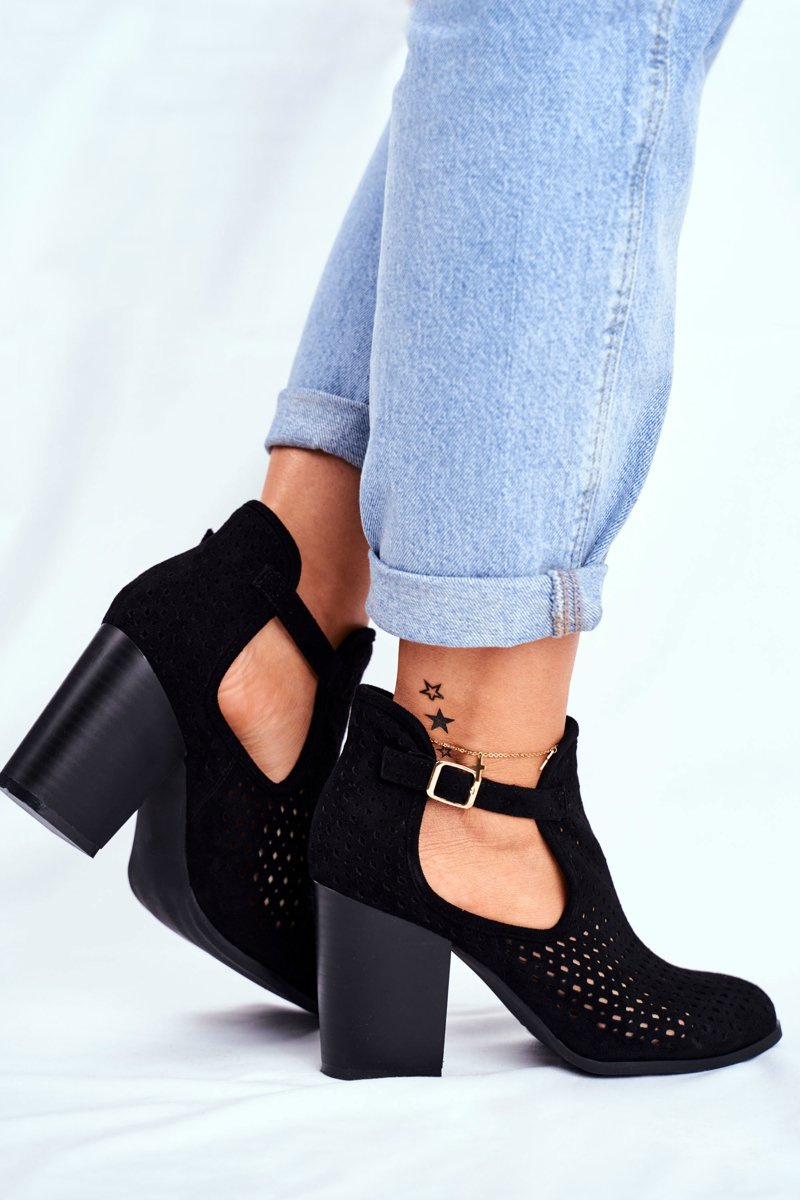Ženské topánky na čiernom pilieri semišového stĺpu Morrena