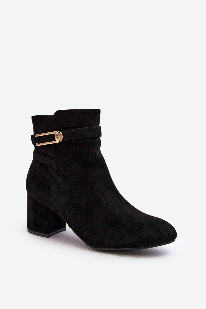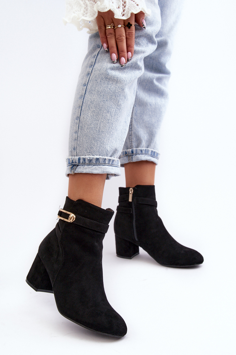 Dámske topánky s členkovým zvrškom. Podpätky zabudované vo forme nízkeho stĺpika. Vyrobené z ekologického semišu. Pripevnený zipsom. Zaoblené prsty na nohách. Agent izoloval prikrývku topánky. Dva tenké prúžky v hornej časti hornej časti. Okrem toho má tento model stuhnutú pätu. Pri výbere veľkosti navrhnite tabuľku veľkosti. p>