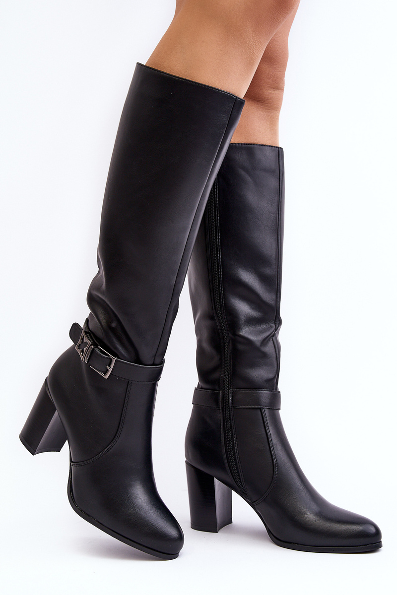 Dámske topánky boli vyrobené z ekologickej kože. Podpätky zabudované vo forme príspevku. Zvonok pred kolenom zdobeným pásovým remienkom. Noski v mandlí. Agent izoloval kožušinu. Tento model dokonale dopĺňa štylizáciu sukňami alebo šatami! Pri výbere veľkosti navrhnite tabuľku veľkosti.