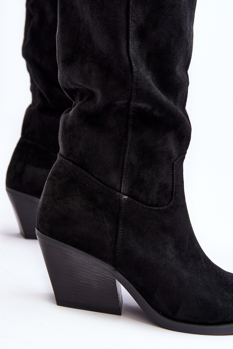 Ženské topánky na vysokých podpätkoch pred kolenom
