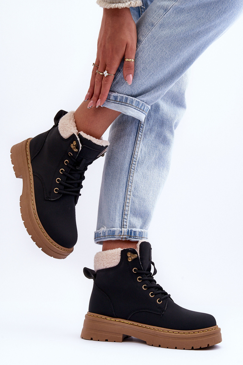 Dámske turistické topánky vyrobené z ekologickej kože. Klasicky šnurovaný model. Postavené na plošine a plochých podpätkoch. Na hornej časti hornej časti a na vnútornej strane jazyka je kabát ovčej kože. Izolovaná prikrývkou obuvi. Tento model lovcov poteší všetkých! Pri výbere veľkosti navrhnite tabuľku veľkosti.