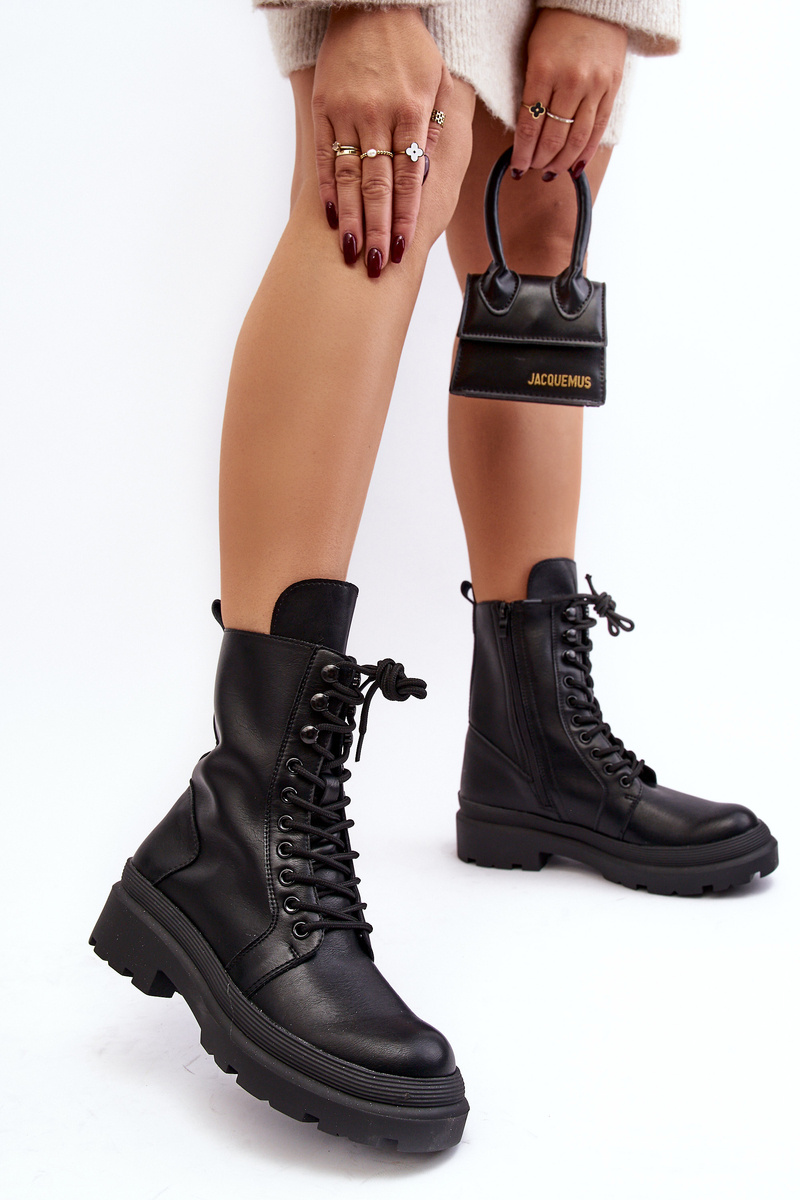 Štýlové ženské topánky sú základným prvkom jesenného a zimného šatníka. Vyrobené z ekologickej kože sa vyznačujú plochou pätou a solídnou plošinou, ktorá zaručuje stabilitu a pohodlie nosenia pri každom kroku. Zámok na boku hornej časti a ďalšie šnurovanie poskytuje perfektné prispôsobenie sa chodidlu. Zaoblené prsty na nohách. Trappers sú ideálne pre rôzne štýly! Pri výbere veľkosti navrhnite tabuľku veľkosti. /p>