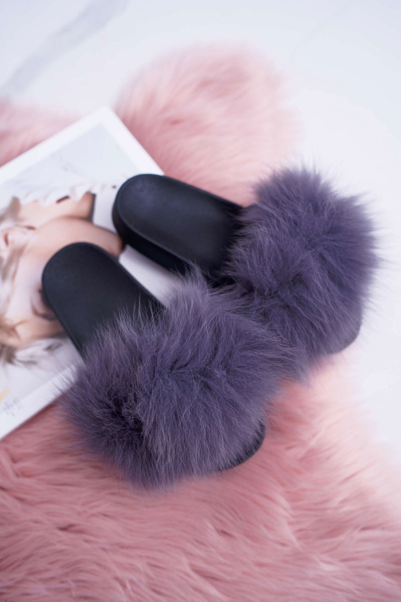 Ženské žabky s kožušinou sivou mäkkou