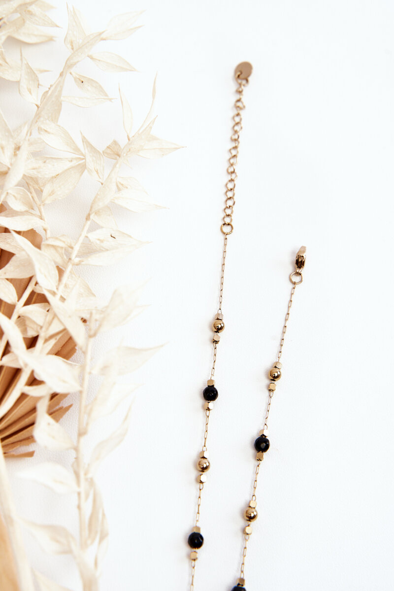 Ženský náhrdelník s čiernymi korálkami zlatý