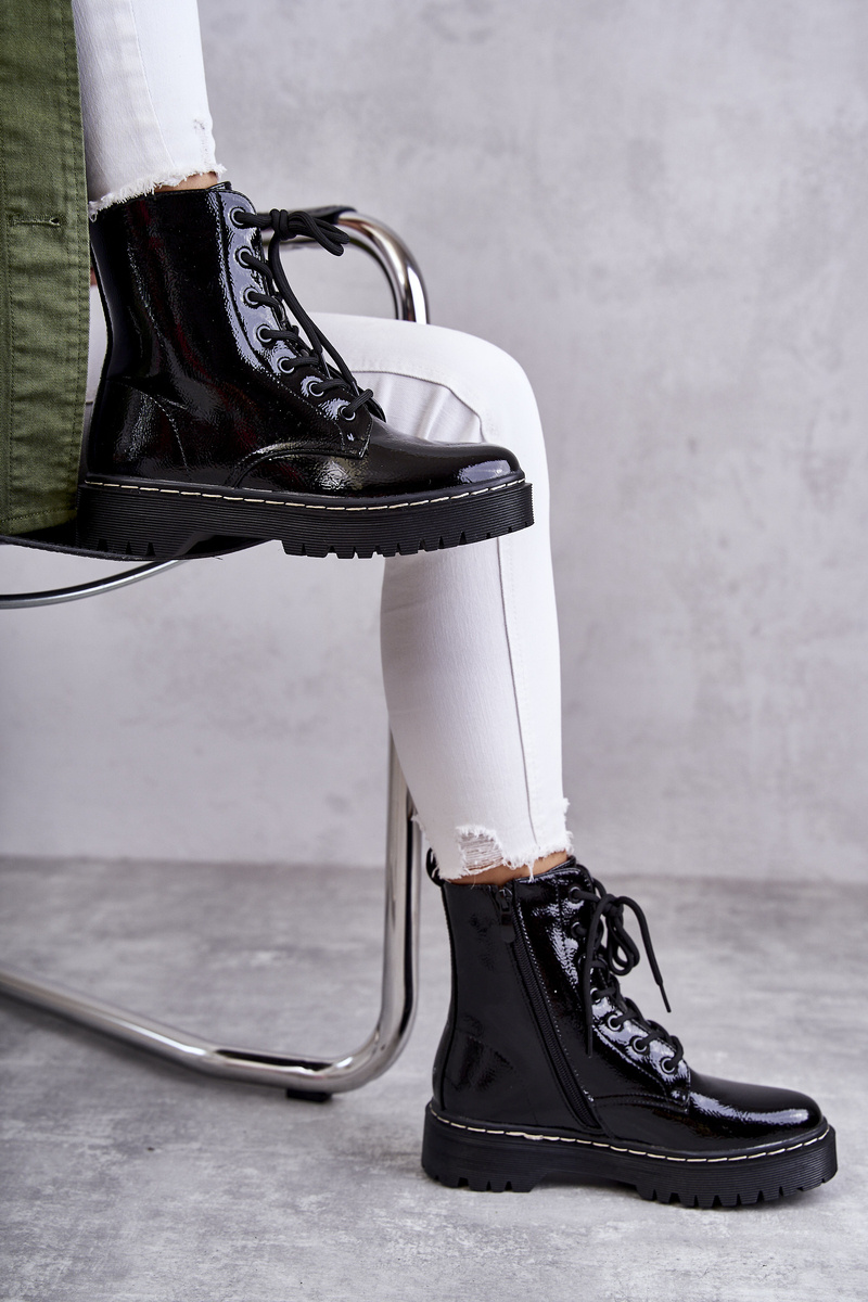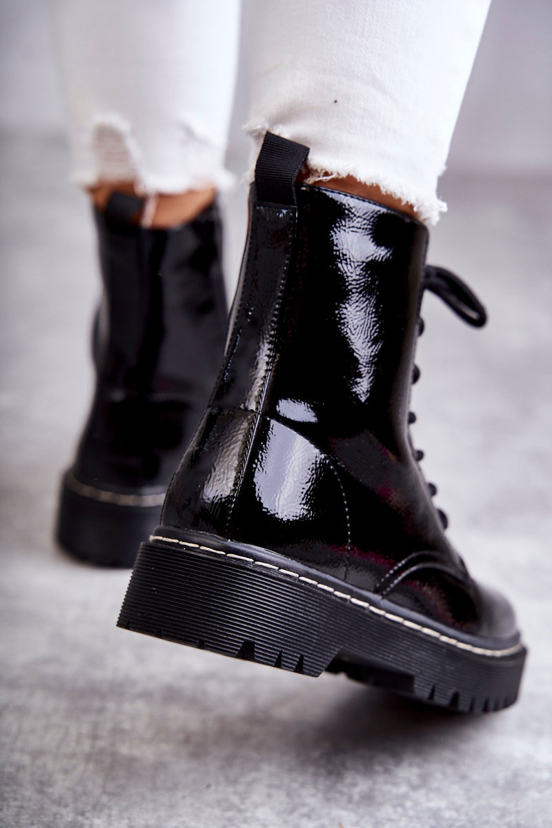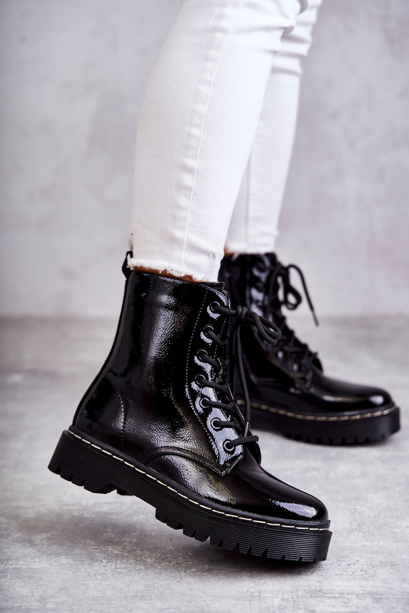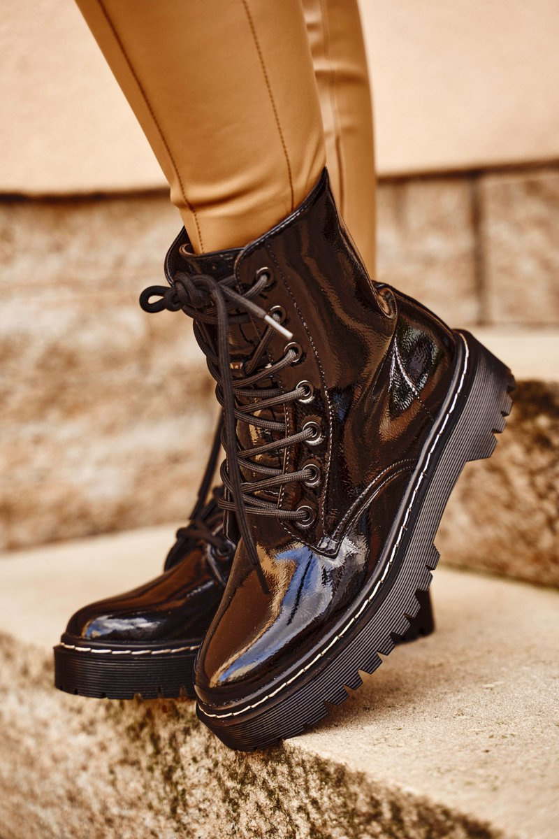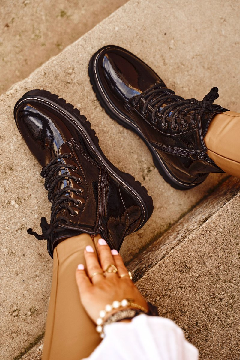 Tieto úžasné turistiku môžu byť vaše! Trappery vyrobené z lakovanej ekologickej kože. Interiér a vložka lemovaná obuvou prikrývkou. Pri výbere veľkosti navrhnite tabuľku veľkosti.