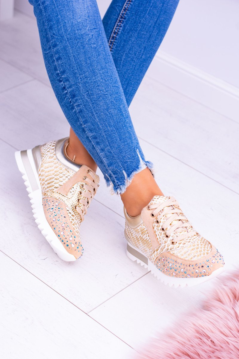 Zlaté dámske športové topánky s flitrami Lu Boo Infinitiale