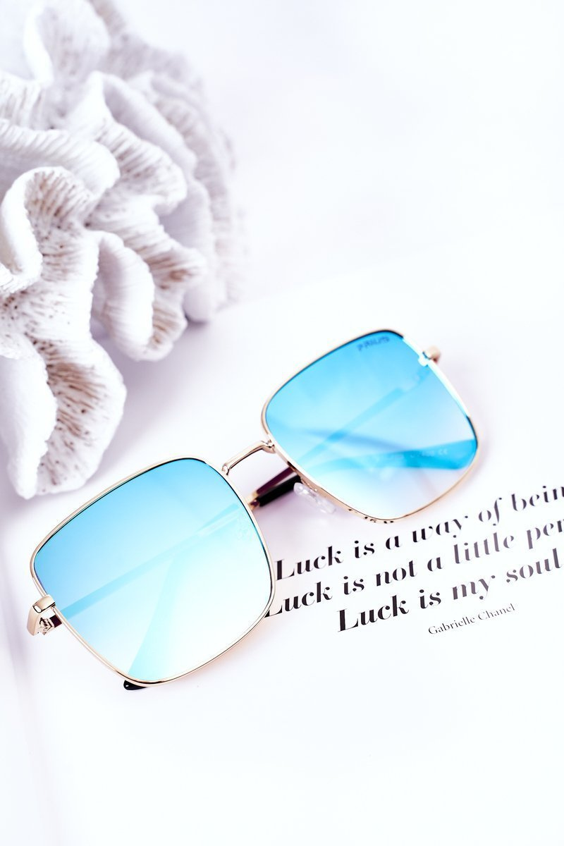 Zlaté štvorcové okuliare s ombre modrým okuliam