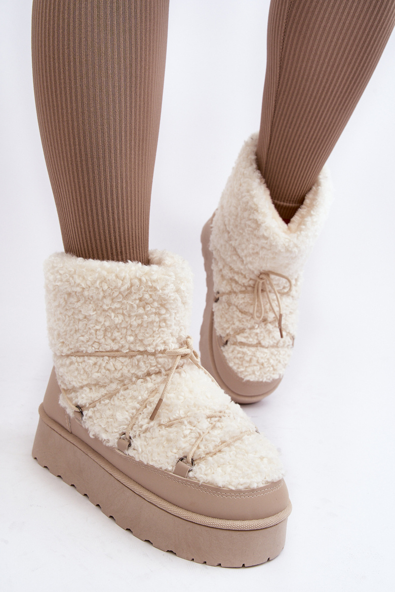 Zviazané dámske snehové topánky na silnom béžovom loso