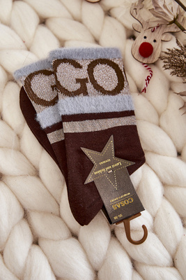 Teplé ponožky žien s béžovými a čiernymi vzormi