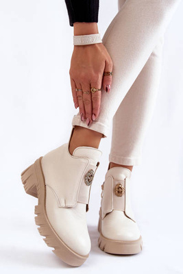 Dámske vysoké topánky s béžovým enroe zámkom