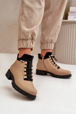 +4Zateplené Dámske Športové Topánky Na Šnurovanie Na Platforme Béžové Bialoa